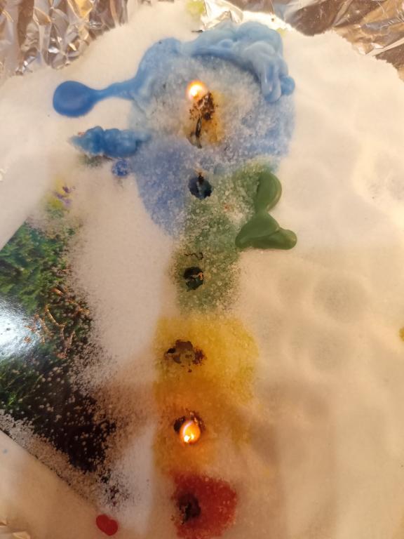 В итоге: свечи горели лучше чем вчера, Манипура не сплеталась с Анахатой,а на Свадхистане не было оплывов вообще...Единственное только горели сегодня вместе Аджна и Сахасрара,как вчера Анахата и Манипура.