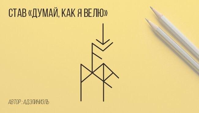 Силой данного Рунического става оператор пробивает сознание и подсознание объекта мыслью о том- то и том- то. Эта мысль легко и беспрепятственно укореняется в подсознании кроля и воспринимается ним как своя собственная.