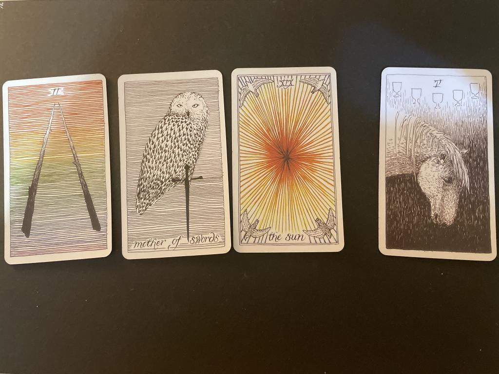 Вас расклад показал как мать мечей - вам мудрости не занимать, своего опыта более чем хватает. По трактовке стандартной может показывать женщину разведённую/вдову/без деток (если пожелаете, напишите здесь, либо в лс как  проигрывается карта с вашей личностью)