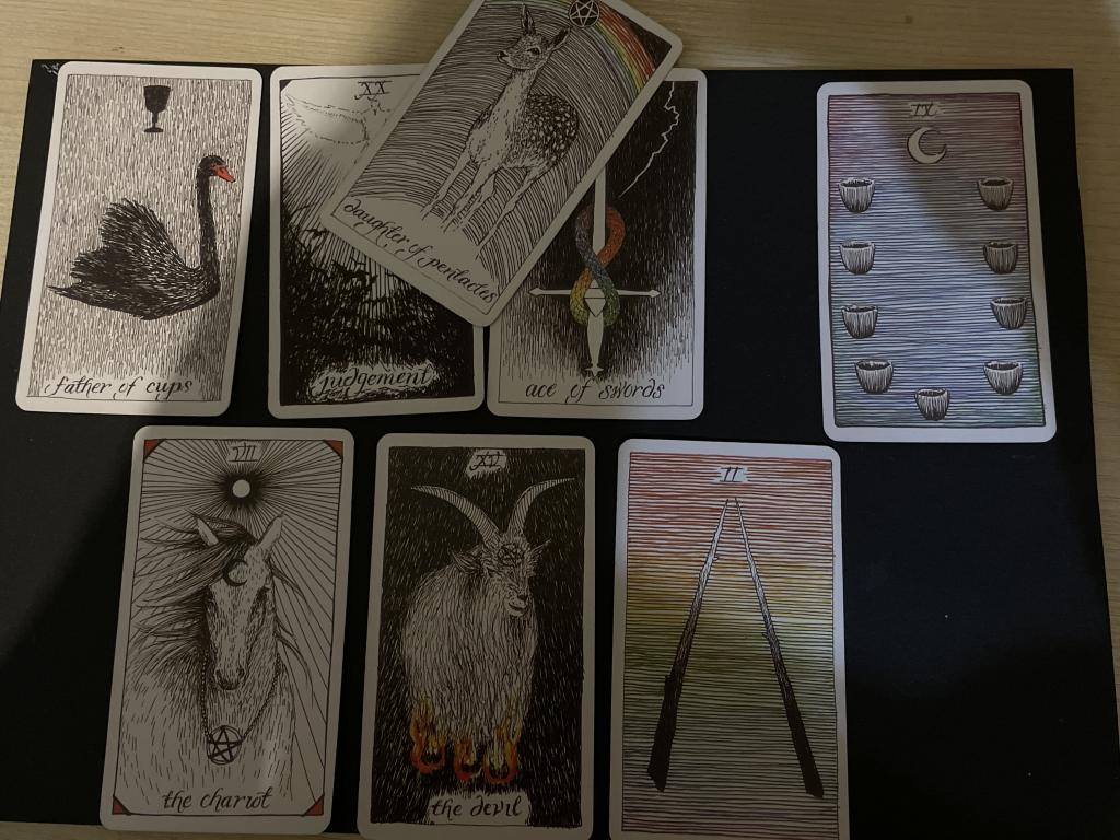 Первый ряд про отношения в целом: Пока глухо в течение этого срока. Почему то двое мужчин вышло следом после карты смерть  :D признавайтесь, есть ли вариант прозапас?) вот они могут проявится в реальной жизни