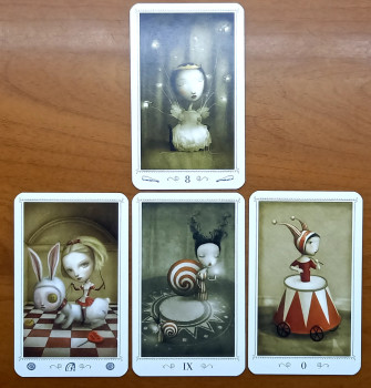 Мужчина не предсказуем.  Корона на голове. Люцифер и так понятно. По зеркалу идёт искажённая информация. Скелеты в своем шкафу.  Двойная жизнь. Один из вас мириться с выходками другого. Карта общения дистанционного характера.  По чародею один из вас всё-таки держит ситуацию под своим контролем. Даёт движок в нужное русло.