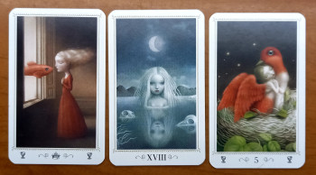 На текущий момент между вами всё туманно и загадочно. Много недосказанностей, недопонимания, эмоций. Его к вам тянет, он переживает, что вы не вместе, страдает от этого (5 К). У вас более взрослая, мудрая позиция, но при этом тоже остались к нему чувства. По этому раскладу видно, что вы пытаетесь ситуацию контролировать, очень похоже на вызов, если говорить о воздействиях (Королева К).  Но с его стороны есть какие-то блоки или другие привязки - он из этого гнезда на 5 К вылететь не может, его что-то держит.