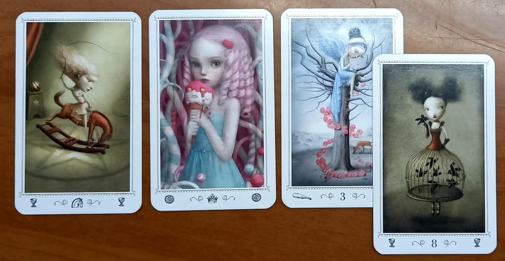 8 пентаклей, 8 кубков, Маг, Дурак, Император, Король жезлов.