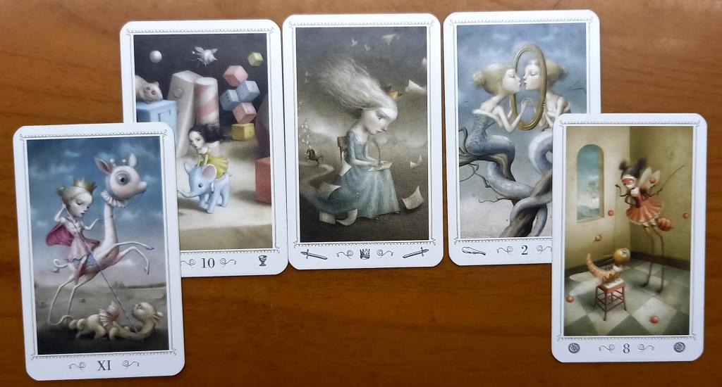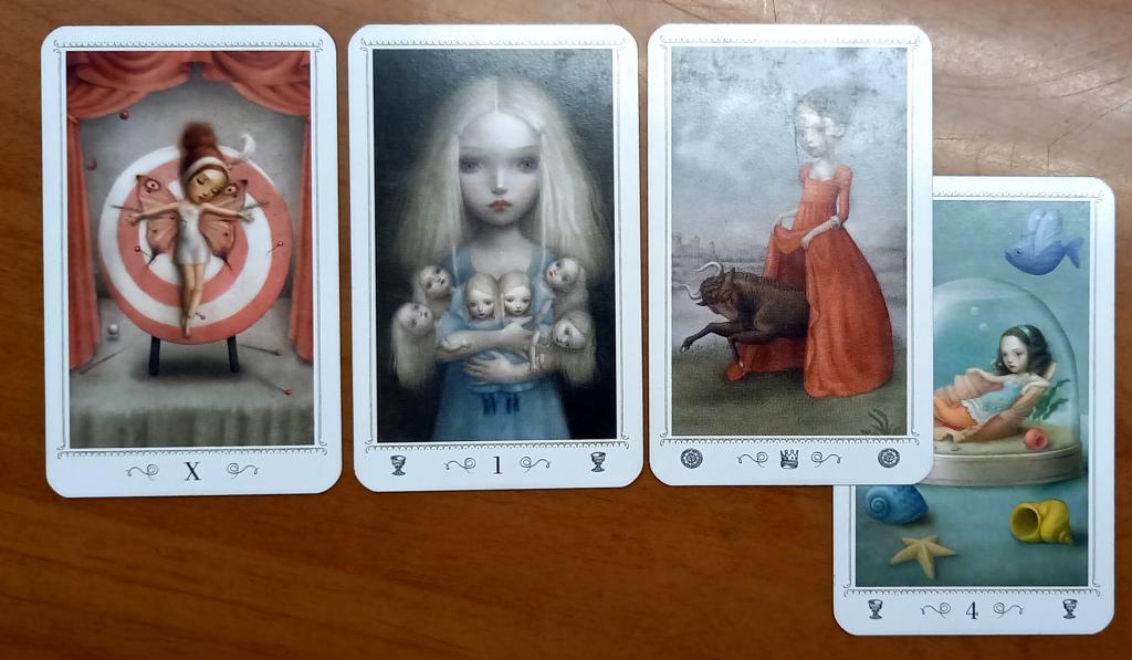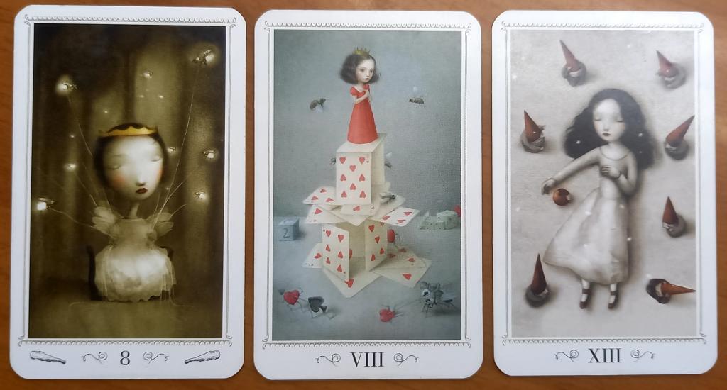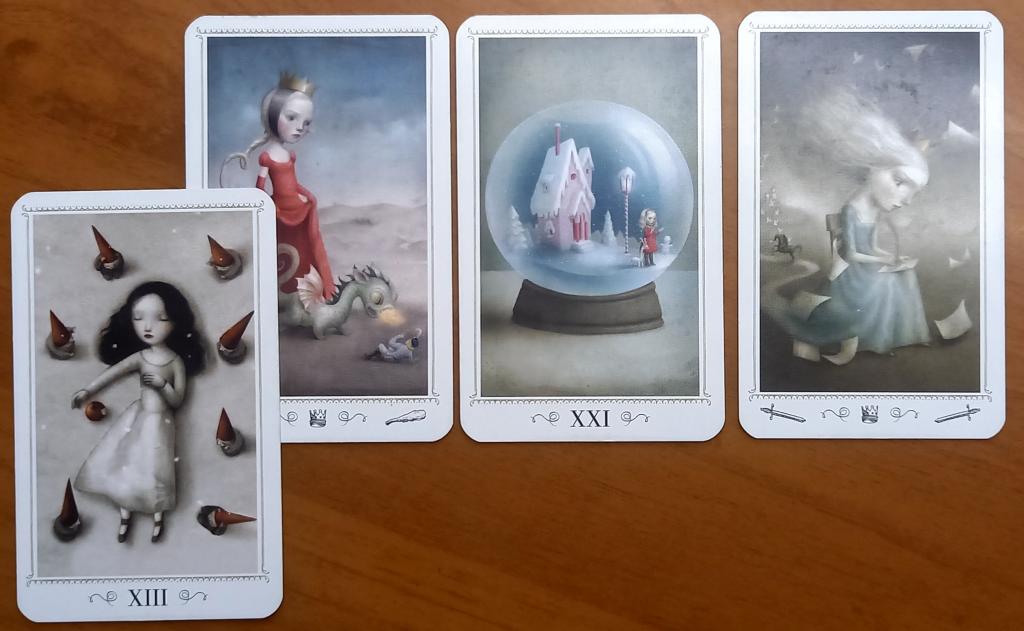Королева кубков, король кубков, Смерть, Иерофант, Правосудие, 8 мечей.