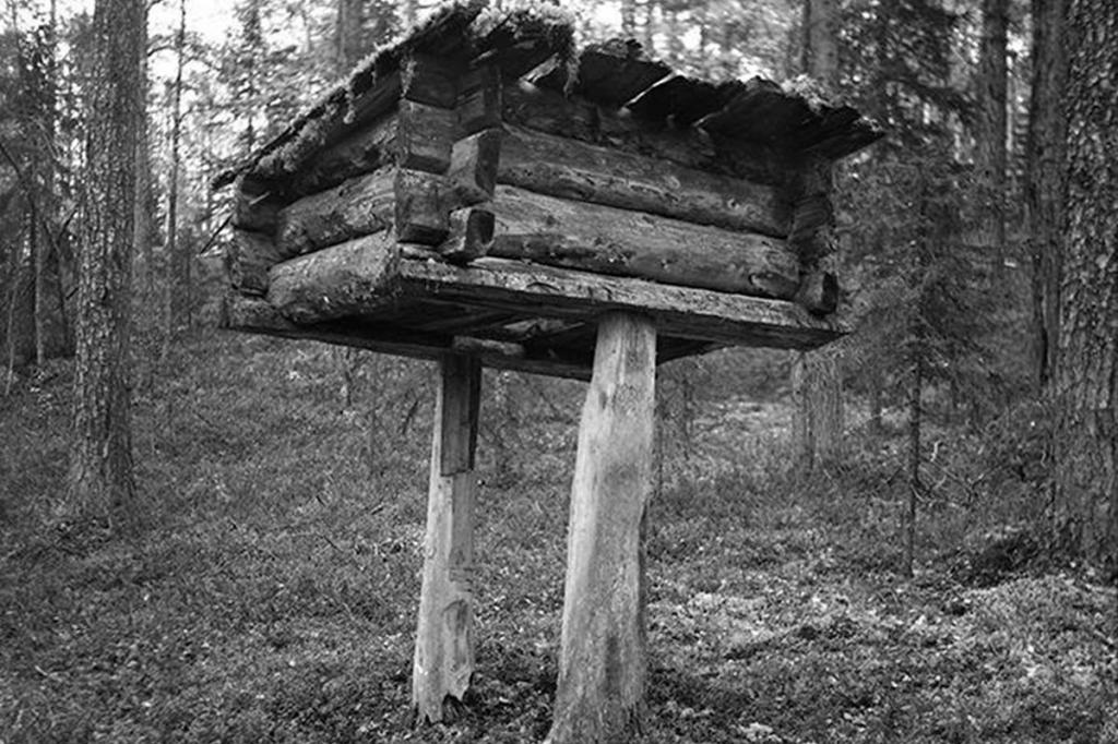 Это избушка на "курьих ножках", так называемая, "моровая изба", то есть домик для покойника. В интернете очень много информации, порой противоречивой, но нам интересна сама фотография.