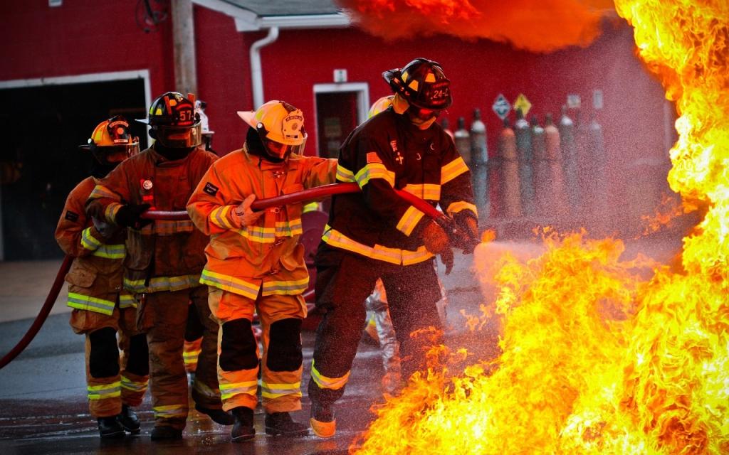 На фото учения пожарных по заданной легенде.