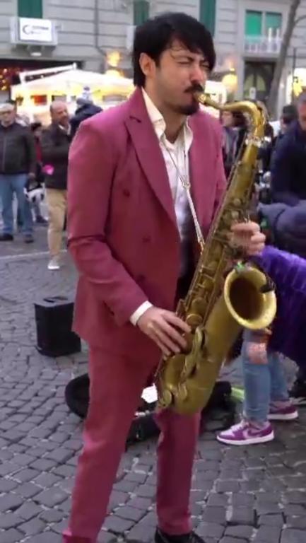 Музыкант (с бородкой) "рубит" деньги)). В этом видео несколько человек за 15 секунд видео ему деньги кидают. И инструмент отлично увидели, форму в смысле.