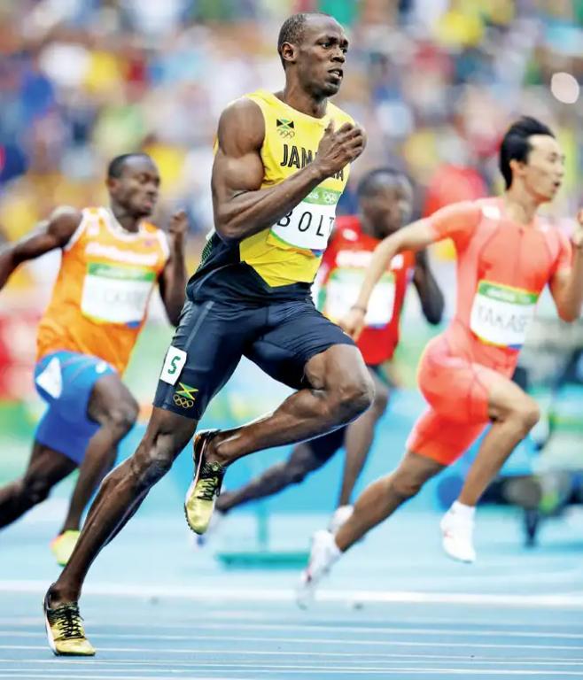 Это соревнования, бег. Усейн Болт, самый быстрый человек в мире, ставит очередной рекорд.