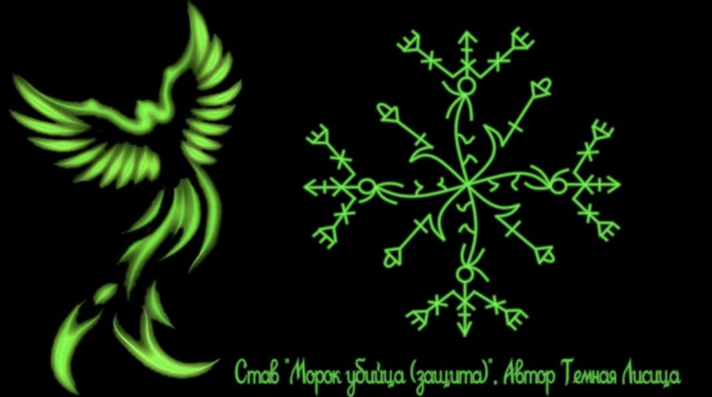 Стилизованные Лагуз+Перт+Тейваз+Кано(пп)+Йотунский морок - изворотливый морок, уводит врага, все его атаки, весь негатив от оператора. Ловко обходит все защиты врага, выискивая дыры и бреши, куда отправляет смертельную порчу.