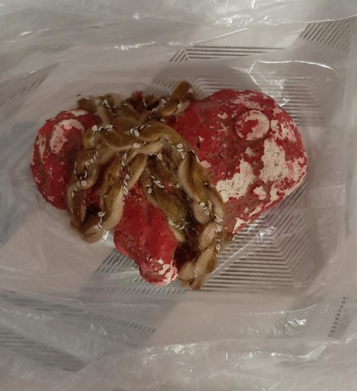 Доброго времени суток, уважаемые практики. Нужно мнение со стороны. Сегодня мой муж нашёл вот такую вещь в доме моего покойного отца (это сердце слеплено из теста, окрашенное и перевязанное нитью), лежало это дело на старинной иконе под потолком. Думаю, что это подклад, но возможно, что отец делал себе какого рода защитный ритуал от приворотов (был опыт у него в жизни с приворотом), но до истины уже не докапаться. Вопрос в другом, муж схватил это голыми руками и приволок к нам в квартиру, что теперь делать с этой штуковиной и с мужем? Заранее благодарю за любой ответ.
