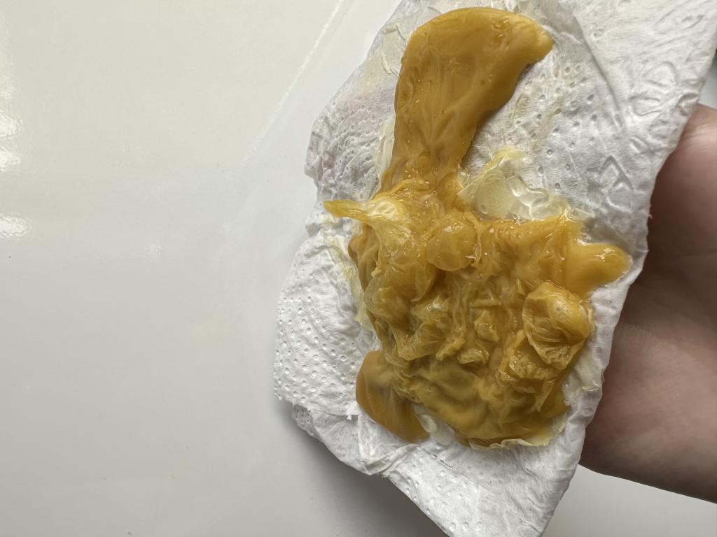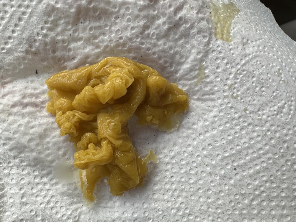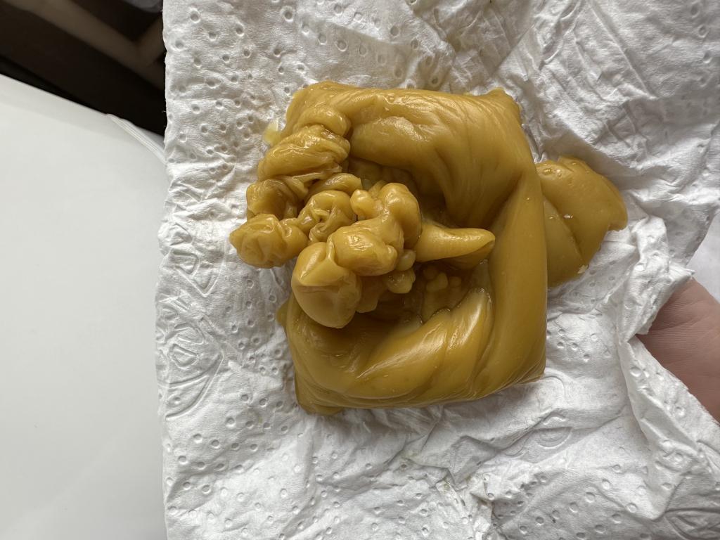 Здравствуйте. Третью отливку - воск перегрели, потому она такая непонятная, лейте когда немного остынет и будет как киселек.