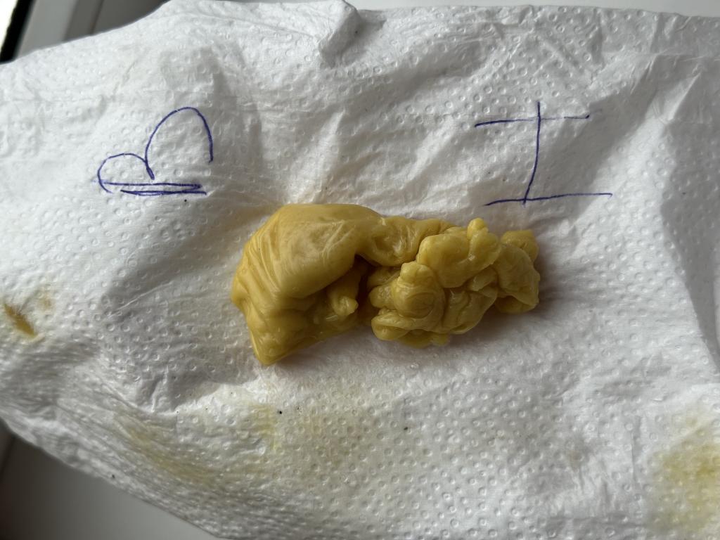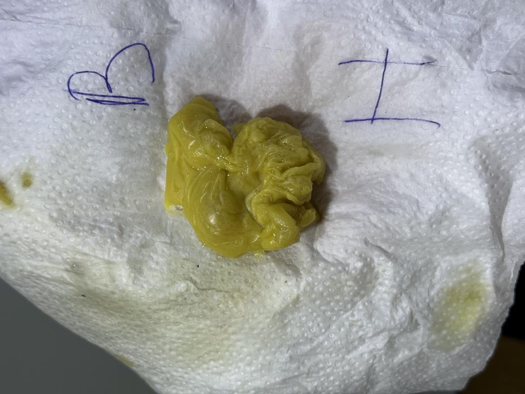 Здравствуйте, отливка с диагностическим заговором. Поможете разобраться? Как писала, цель отлить непонятные слабость и прыщи, вроде немагического происхождения судя по Таро. Верх и низ как на фото