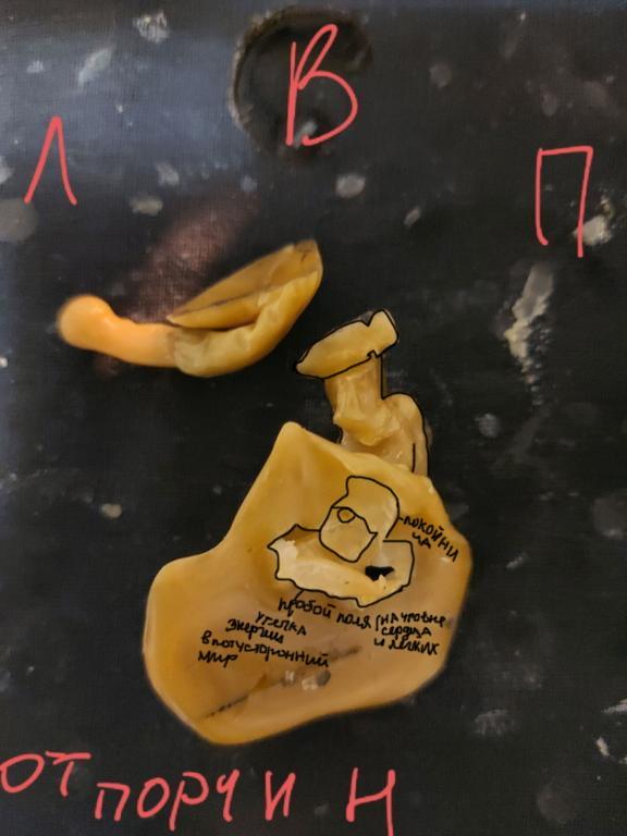 Доброй ночи,уважаемые практики прошу помощи и совета🙏 почти 3 месяца в активных чистках снимаю негатив от кровников своей матери и свекрови . С себя дочери и мужа. Чистки были рунами, отжиги, солью чакрово,дом от подкладов подселенцев и ,дело двинулось с мёртвой точки ,но и я и дочь болеем все это время кашель сопли , коньютивит был у неё и у мужа. По диагностике порчи проклятия,работы через погост сущей бесов, нам на развод,мне на агресию с дочкой пьянку вообщем много чего,большую чать  сняла .По снам поняла что у меня есть подсел начала снимать рунами,ничего не вышло. Решила  ещё начать отливаться и именно свинцом. И с этой недели после отливки себя и мужа свинцом от негатива подселения замков у дочери сразу же на следующий день начался нервный тик. Врачи разводят руками. Мол нервное напряжение,всё такое. Чистки ей все через себя делаю так как ей 5.5 лет но когда чистила себя от подселенцев (рунами) симптоматика была у нас схожа кашель агрессия . Добавила ей Чистки смывы водные с чертополохом ,крапивой зверобоем ,святой водой умываю. Делала отчитку через архангела Михаила тик чуть меньше стал  за эти сутки,но поведение она как с ума сошла. Кричит балуется плачет смеётся. Пыталась в игровой форме меня ударить передразнивает,Вообщем налицо что в ней кто-то есть. Тем более здесь на форуме в симптомах чисток писали что тики это про подселенцев. Сейчас отливала через молитвы на изгнание подселенца, по тексту олово но у меня воск . Вот что вылилось две отливки ,и ещё одна от порчи болезни 12 сестер снять(отрезной кусок  на голове соединила для фото срезала канал) Подскажите я правильно поняла это подселенец?  Я отливки таро диагностирую так мне понятнее. И на счёт второй у меня больше вопрос похоже на двойное объятие. А на таро что это защита идёт от короля жезлов (умеренность смерть шут король жезлов заезда рыцарь пентаклей.) Скорее что еще мое обращение к роду было и просила дочери защиты,поправьте если не права.Что можно ещё добавить? Чем помочь чтобы не навредить. Тяжело снимать негатив когда магичат кровники,их обеих закрыла на колдовство,рунами,оборвала каналы по которым мог идти негатив. Таро говорят уходит негатив но слоями,за нас с мужем не так страшно,больше боюсь за нее( И навредить боюсь и снять скорее хочу с нее . Фото ниже подписаны,дыра снизу так и вылилась сразу.