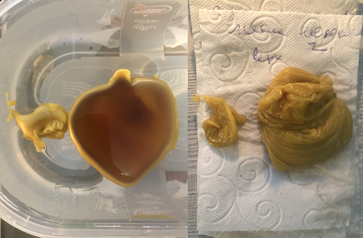 Был слишком остывший воск. Я тут начиталась, что слишком горячий воск лить нельзя, и оказывается его передерживала остужая.