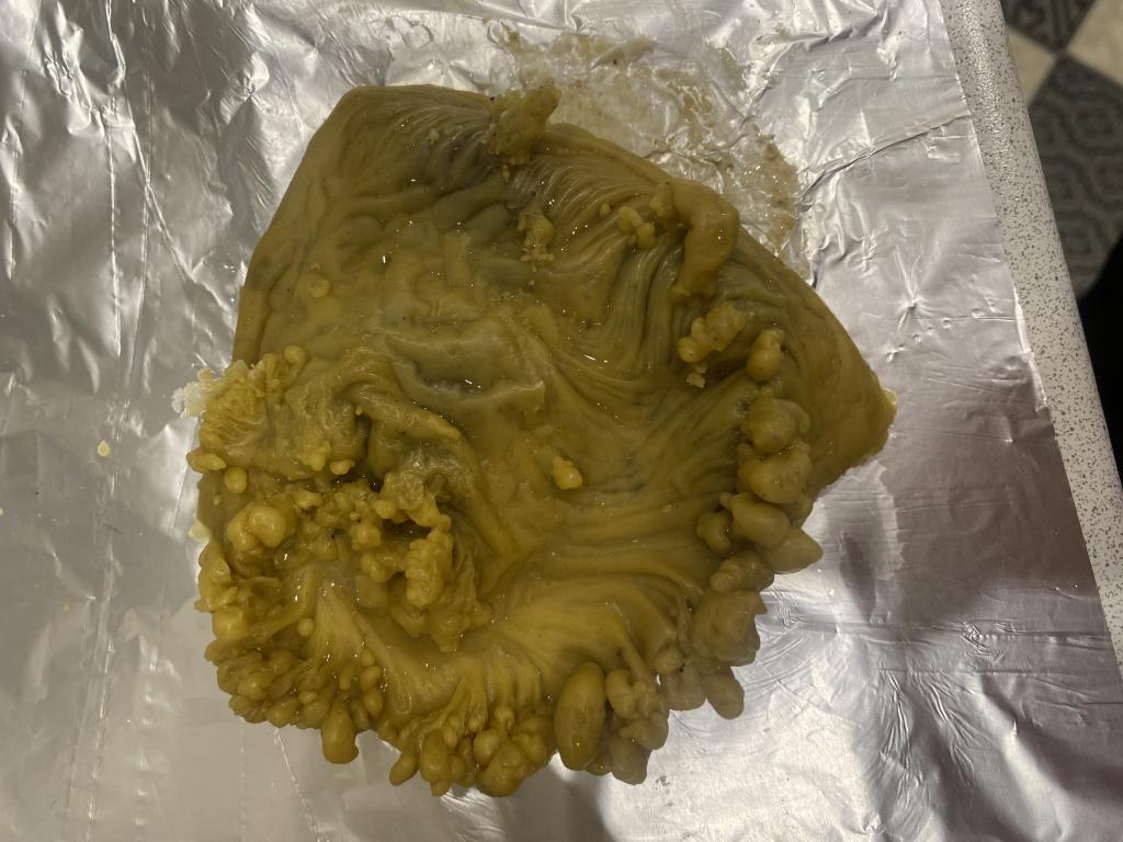 Если смотреть сбоку , то эта отливка похожа на старика в профиль https://drive.google.com/file/d/1Z_mXIzWE5pvP6Ah-a_79yxyOagRyRW0z/view?usp=sharing, Длинные волосы, ухо посередине, крючковатый нос и зубы... чётко видны зубы и что то вылазит из рта... Острая бородёнка.. Это и есть подселенец?
