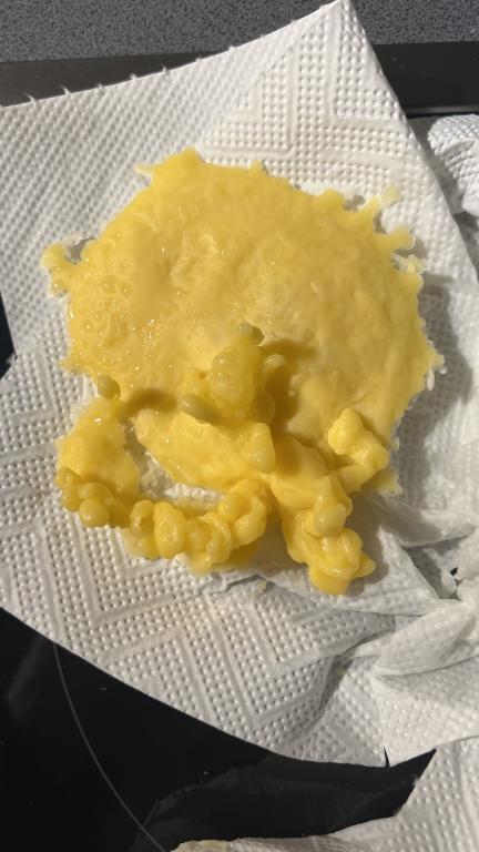 Чашка реально маленькая. Плюсом крашеный воск, если воск вообще. По картине- имеется сущь сидит по центру отливки. Предложу Вам сделать натуральным воском, в посуду нормального размера, еще три отливки с общим заговором. Тогда все будет на много четче видно.