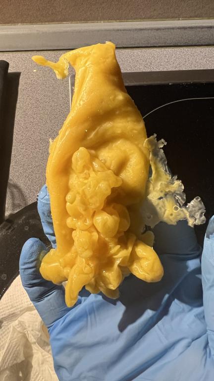 Добрый день, прошу пожалуйста подсказать с интерпретацией данной отливки. К сожалению, нет никаких ассоциаций даже. Диагностика показала на разрушение всех сфер жизни, личной и здоровье, что,собственно, сейчас и происходит. делала 2 отливки пока на отношения.