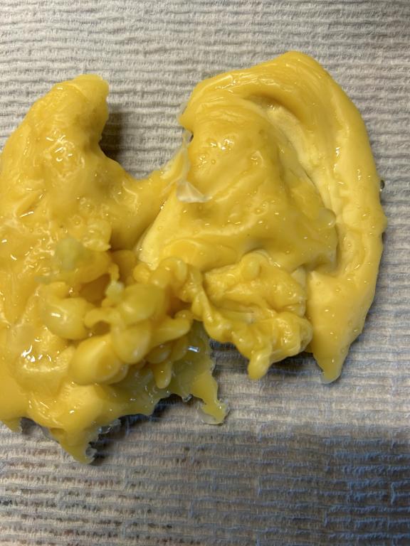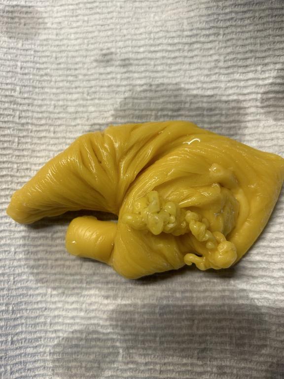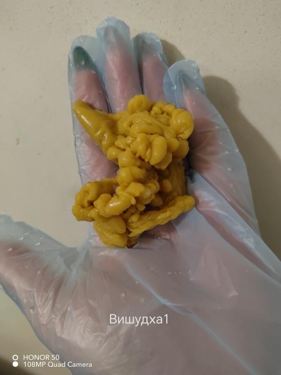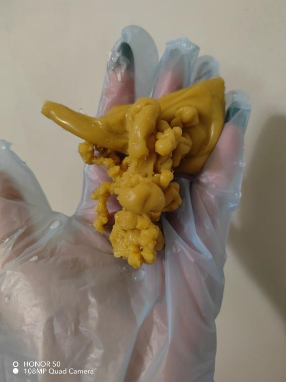 Во время того как воск выливала в воду разделился на 2 части.  Делала диагностику , я не спешила.  К чему это ?
