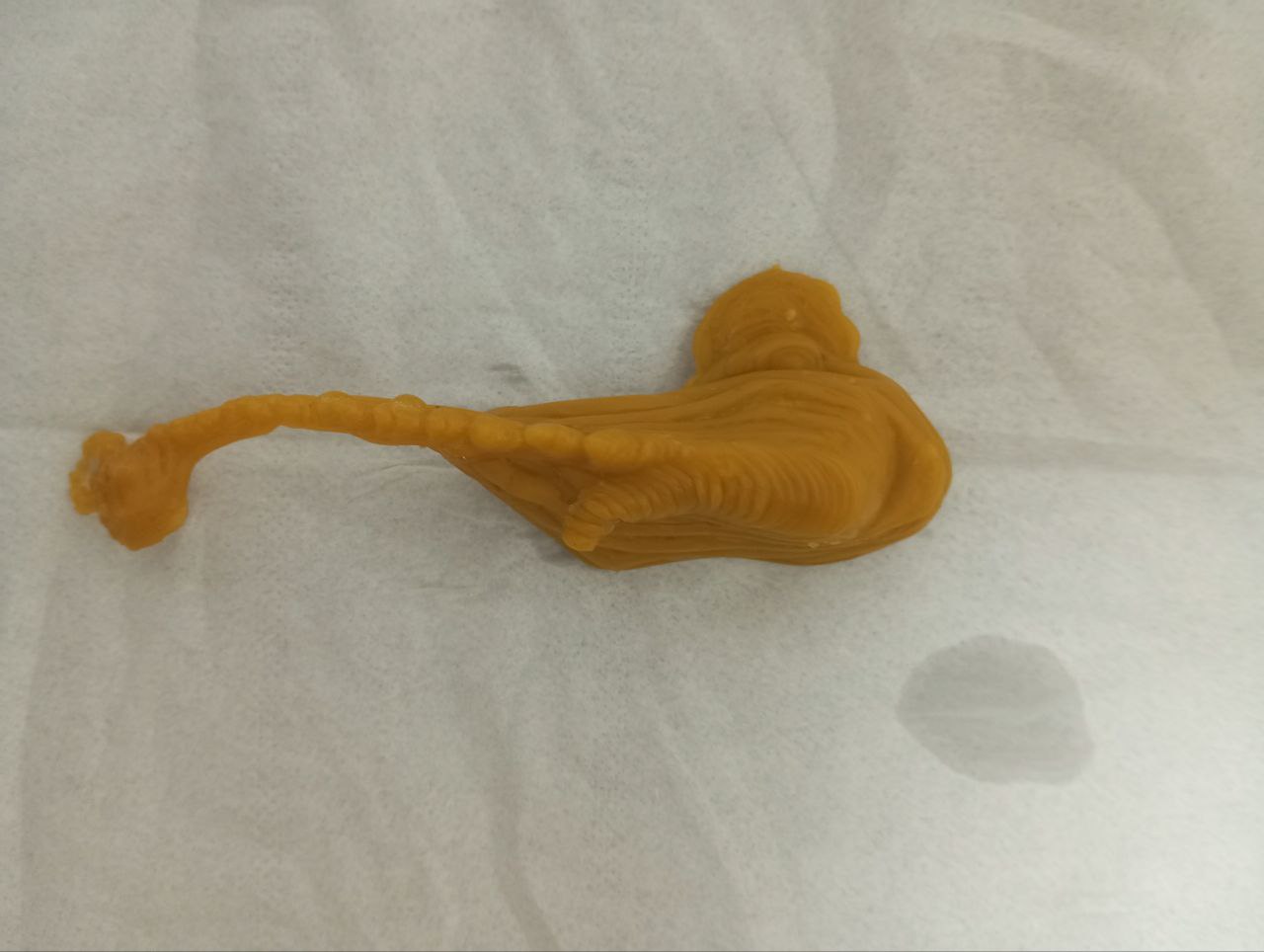 У Вас реально канал крадника отлился (внизу отливки, если верх-низ совпадают) и пока еще не раскручен воском.