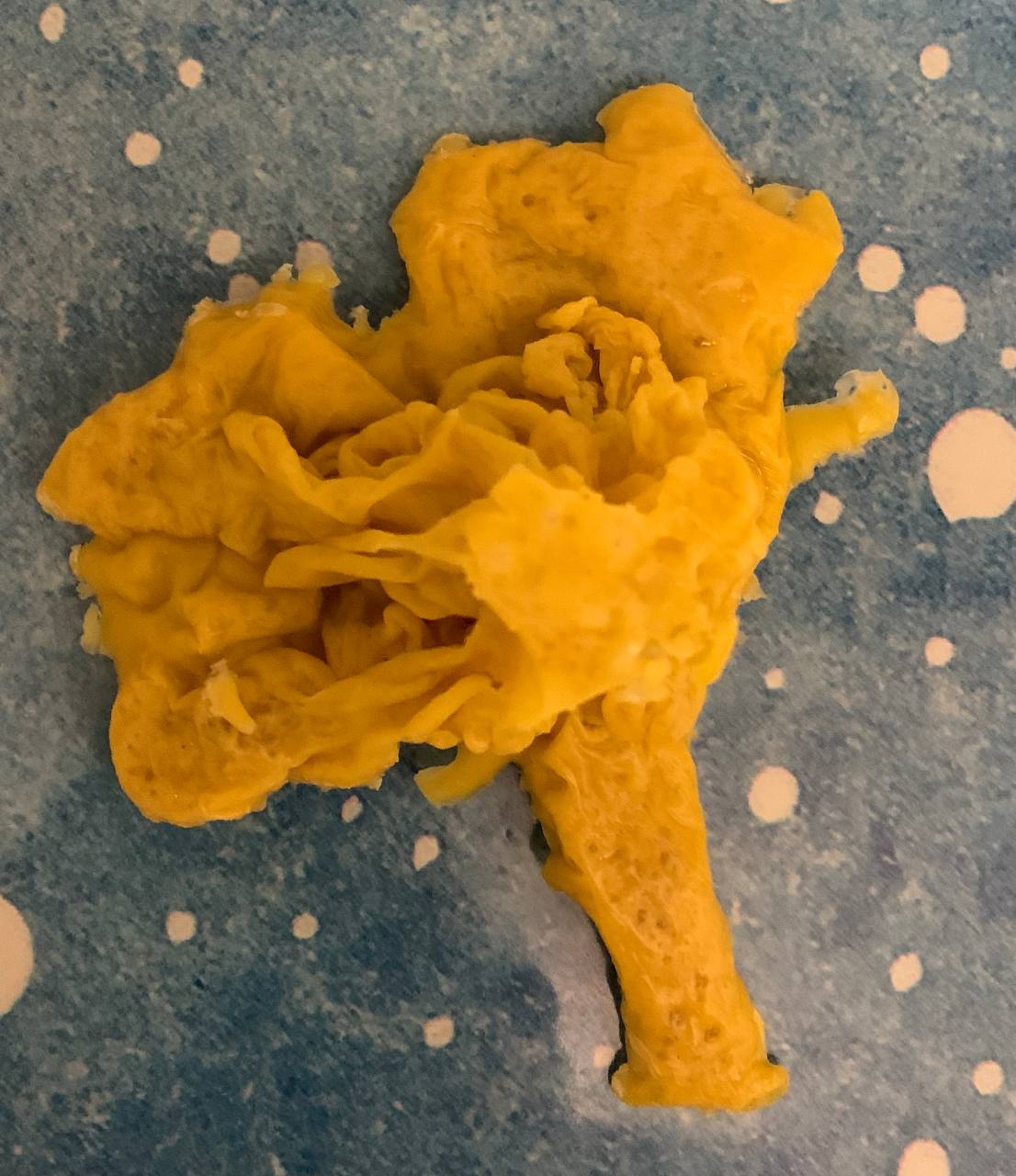 От беса выливала дважды и они обе в форме ракушек да еще и воедино соединились ( там поверхность гладкая была но я ножам случайно задела когда вытаскивала )