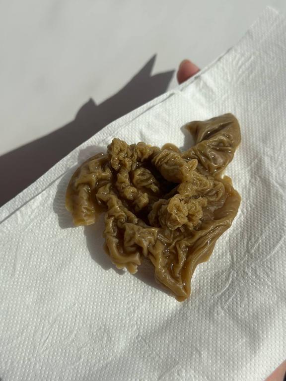 От беса выливала дважды и они обе в форме ракушек да еще и воедино соединились ( там поверхность гладкая была но я ножам случайно задела когда вытаскивала )