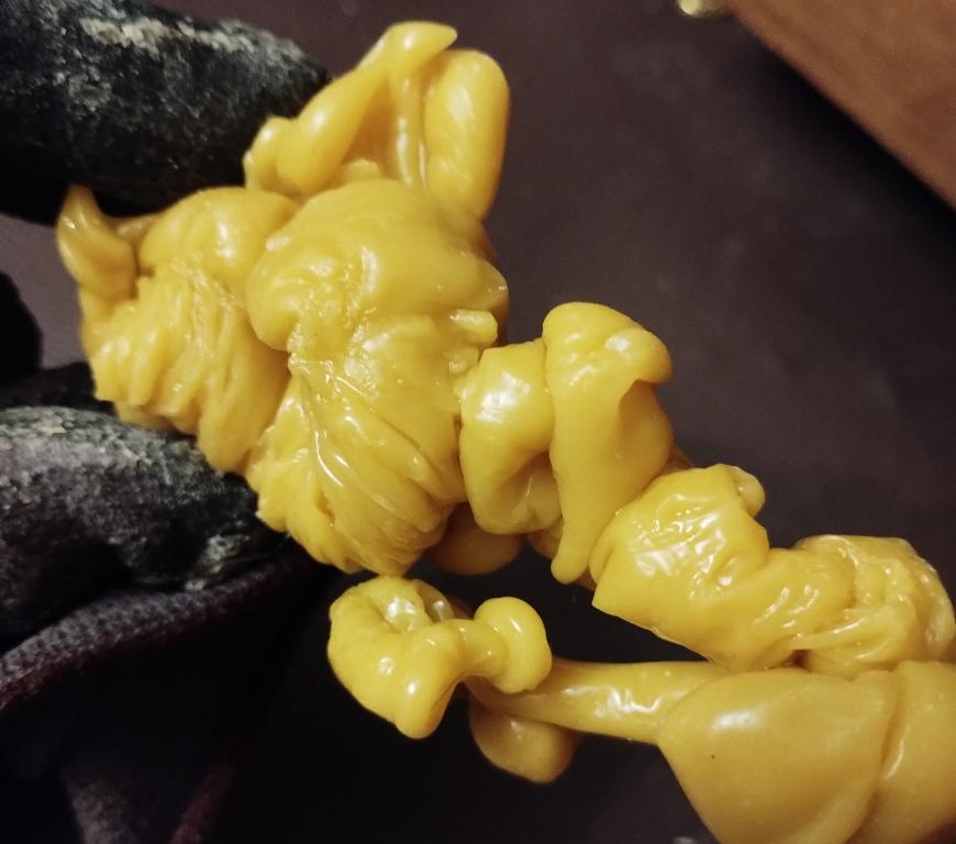 Всем здравствуйте. Делаю отливки недавно , отливала от порчи на одиночество, вылился такой вот персонаж. Подскажите пожалуйста , а кто это ? Что это значит? Голова одна , а лица два, с двух сторон. С одной стороны лысый толстяк , а с другой опечаленный старец. Изо рта у толстяка толстый жгут. Заранее благодарю!