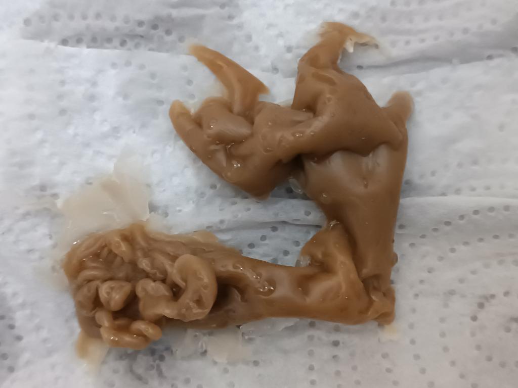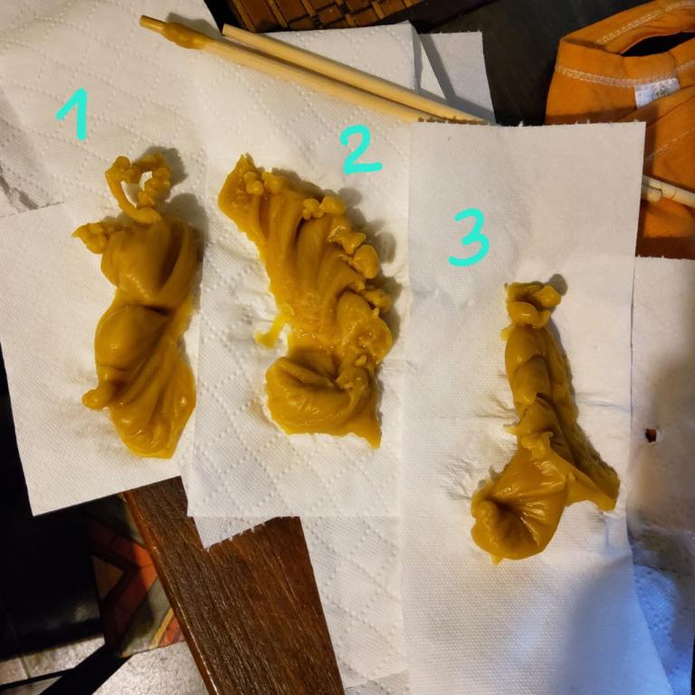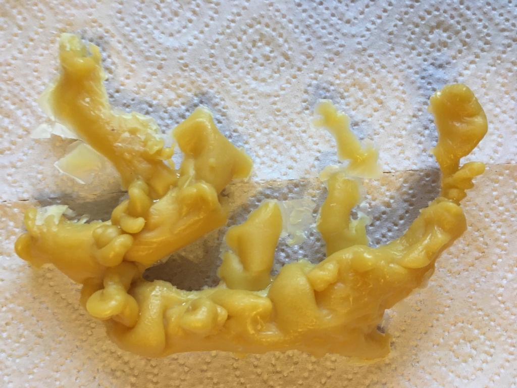 Здравствуйте, делаю отливки себе и ребенку 6 лет, отливки второго дня, после того как отлила ребенка, отливала себя и на 5й отливке( за 2 дня) воск пошёл и прилип ко дну фото во вложении.