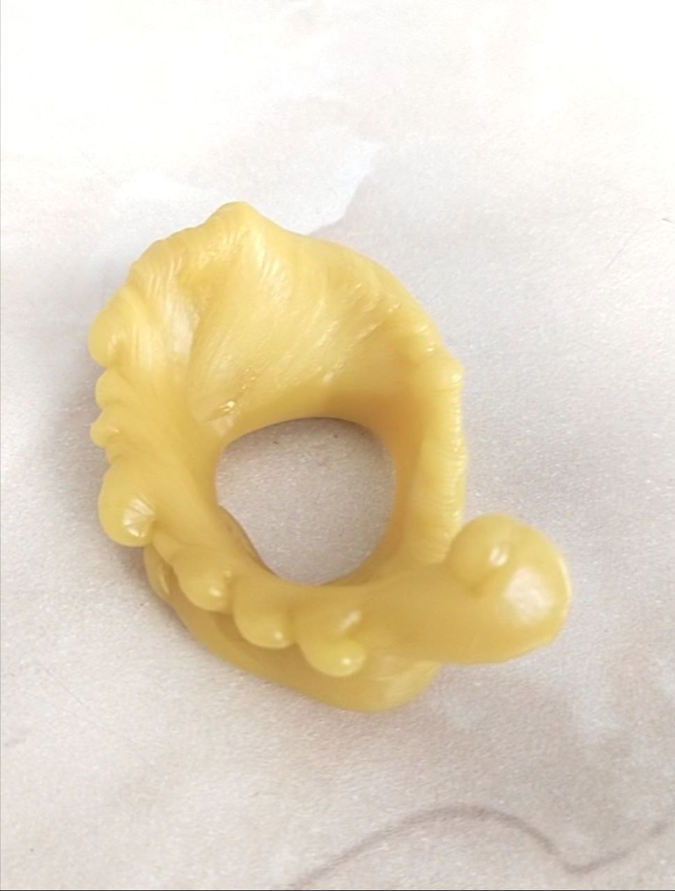 На четвертый день вылились член (опущенный вниз), что-то наподобие "глаза" с дырой и головой гнома/деда (в левой верхнем углу) и сердце с небольшим заборчиком. Я так понимаю, что вскрылся и снялся отворот МЧ от меня, снялся или крадник, или энергетический пробой, а вот сердце не знаю с какой стороны трактовать. Вроде и более-менее нормальная отливка, но меня смущает что-то типа ракушки с правой стороны. Я так понимаю, что не весь негатив еще снят и расслабляться не стоит.