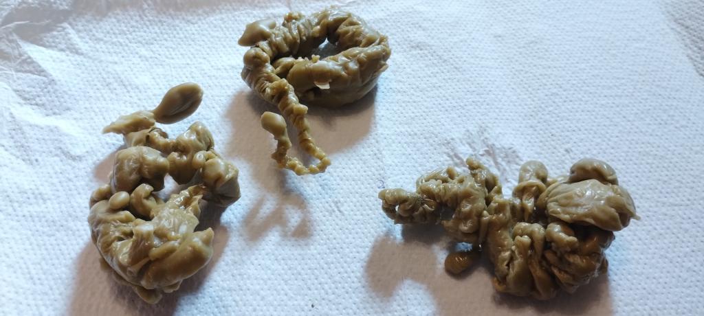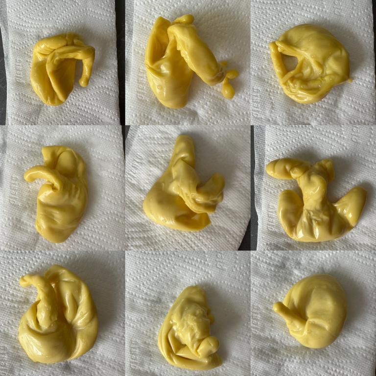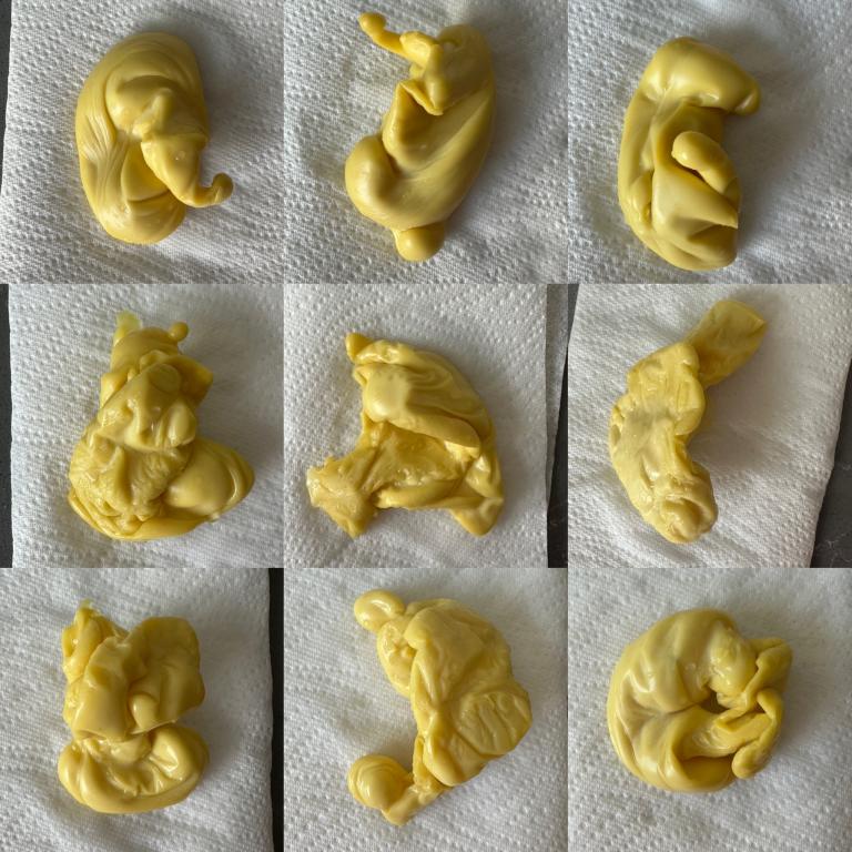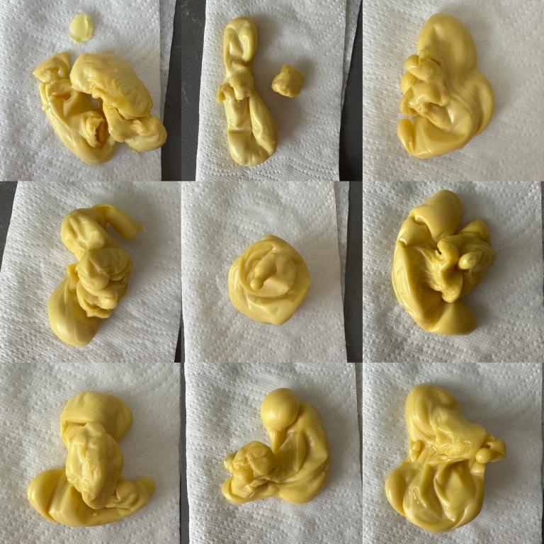 Не хотелось делать из-за мысли, что это может ко мне иметь отношение, последние две. Но в предпоследней воск, видимо, остыл, заговор длинный и читала первый раз. Изменила тактику в последней - получилась другой, а может и нет? Таких у меня не было ещё. Подскажите на что похоже?