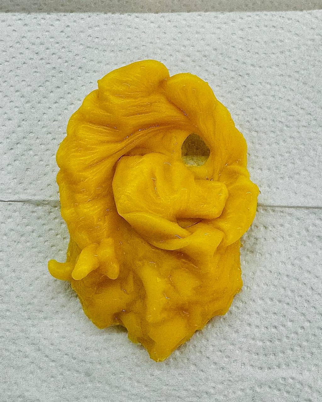 2. Диагностическая мужчины. На первом фото красная точка - примерно в этом месте лился воск, по завершению накрыло голову таким вот капюшоном.