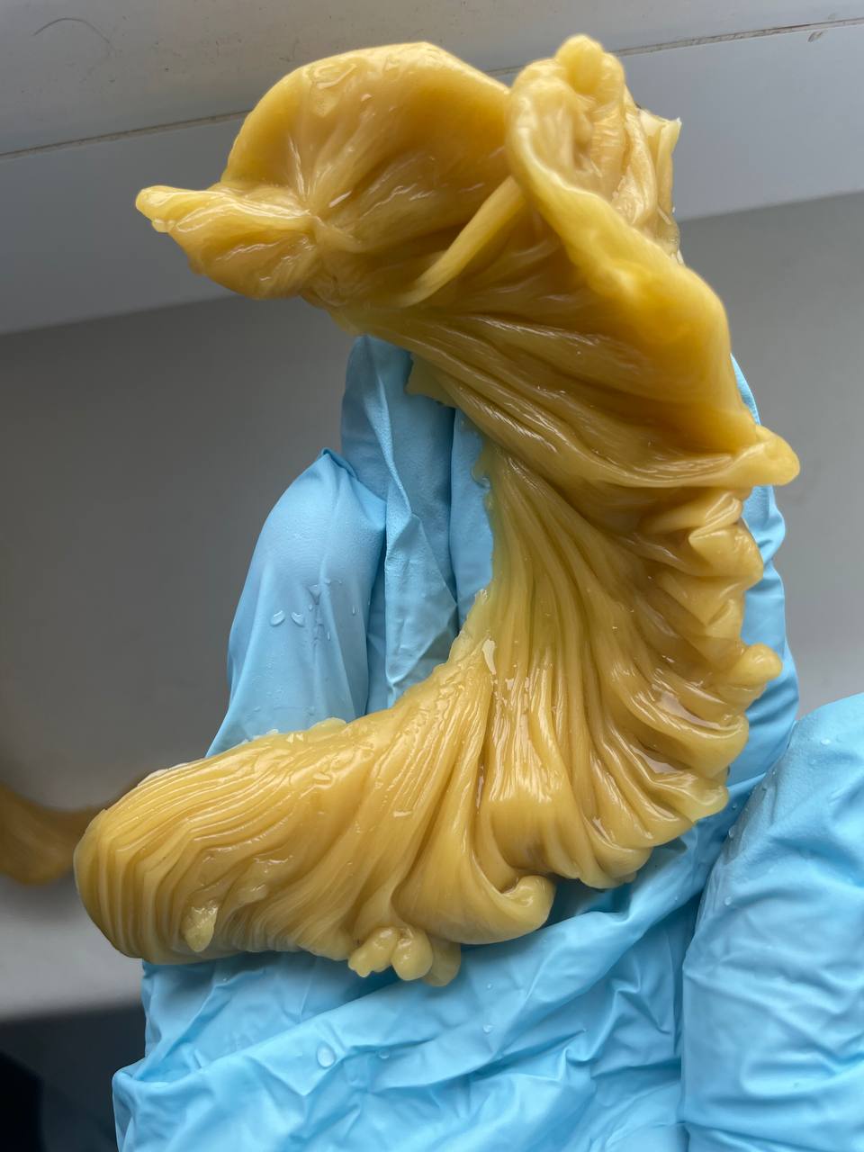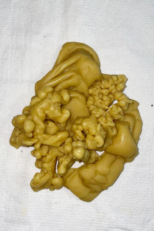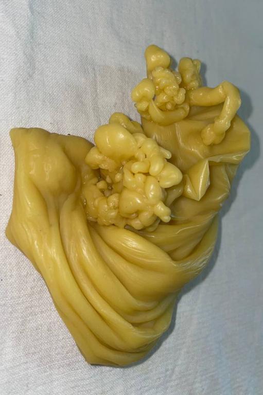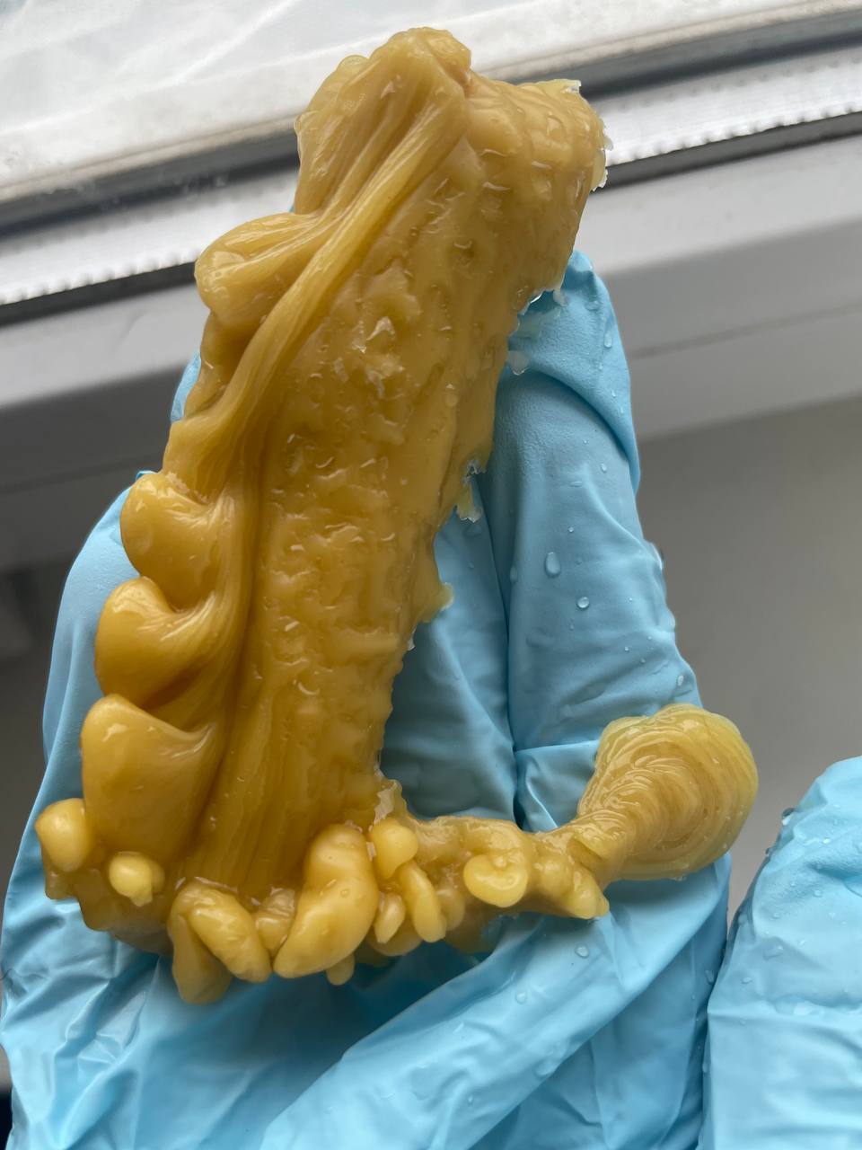 2. Потом мне захотелось прочитать заговор: "Воск выливаю, да его заклинаю, пусть выльется вольт..." И вышло на свет это чудо. Прям не иначе "Чудо-юдо-рыба-кит"!😂