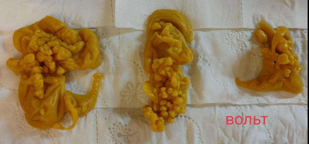 Далее хотел бы сказать про тяжелую артиллерию и профессионалах. Вы уже в работе с уровнем выше среднего. Именно отливки и есть тяжелая артиллерия в плане чисток. У Вас чистка воском проходит очень серьезно. С такими результатами может проходить чистка только при реальной и сильной направленности и от сильного и уверенного человека. Возможно Вы пока еще не видите картины в целом и несколько отстраненно, но могу Вам сказать, что подобные результаты не у всякого ведущего прием человека бывают. Обычно ведущие прием не заинтересованы в излечении, а просо немного снимают негатив и человеку становится полегче. ВСЁ!!! Спустя пару недель человек снова идет на прием за новой порцией облегчения и платит за мелочь. Плюсом принимающий может навесить крадников на человека и тогда вообще проблемы у страждущего начинают сыпаться как из рога изобилия. Вам надо самой работать.