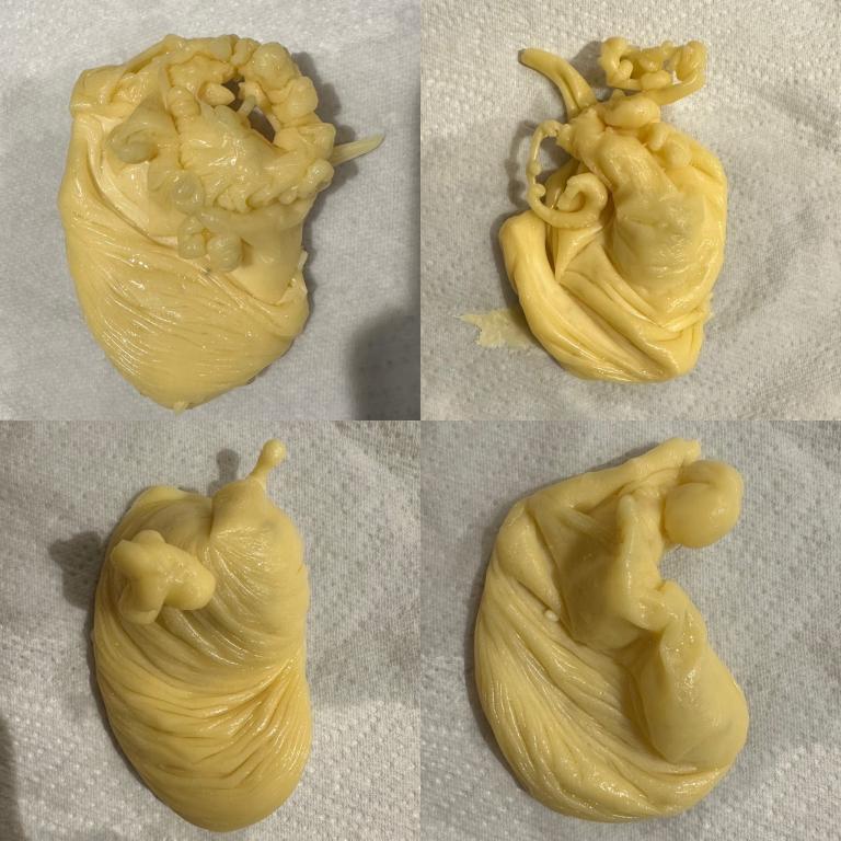 А на третьей отливке замков вышла ушная раковина с круглой серёжкой. Почему-то мне идёт инфа, что во время обряда на кладбище мне набирали по мобильному телефону. Как своего рода закреп и подключка канала к покойнику.