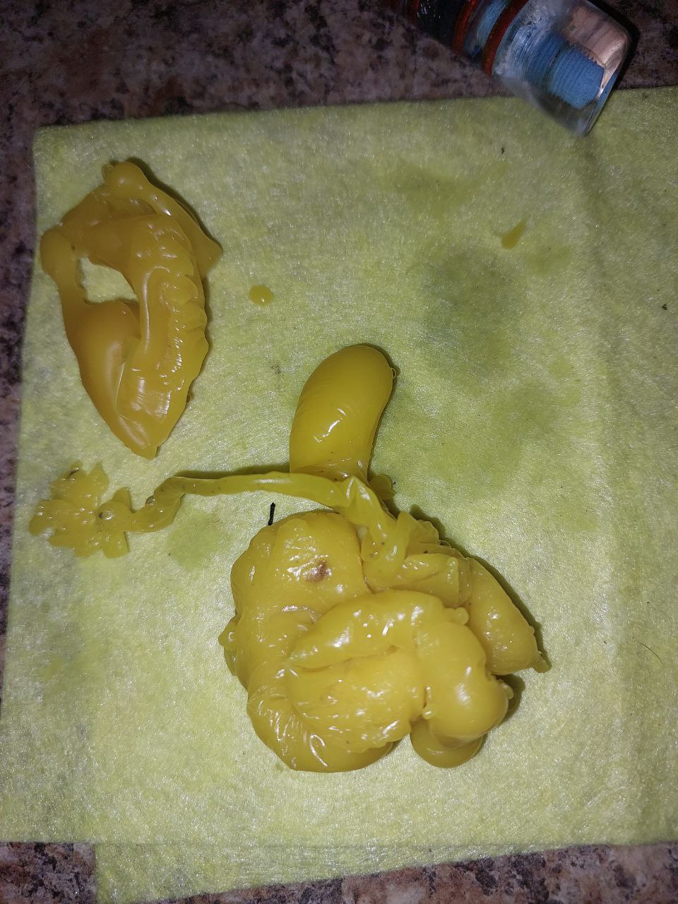На отливке почти отлилась сильная порча через кладбище. Но это под вопросом. Воск так и не приоип ко дну. А может его просто не хватило физически. Плюсом много проклятий. Но это не особо важно, против наличия связи с покойником. Предложу заговором от некропривязок поработать.Доброго времени.