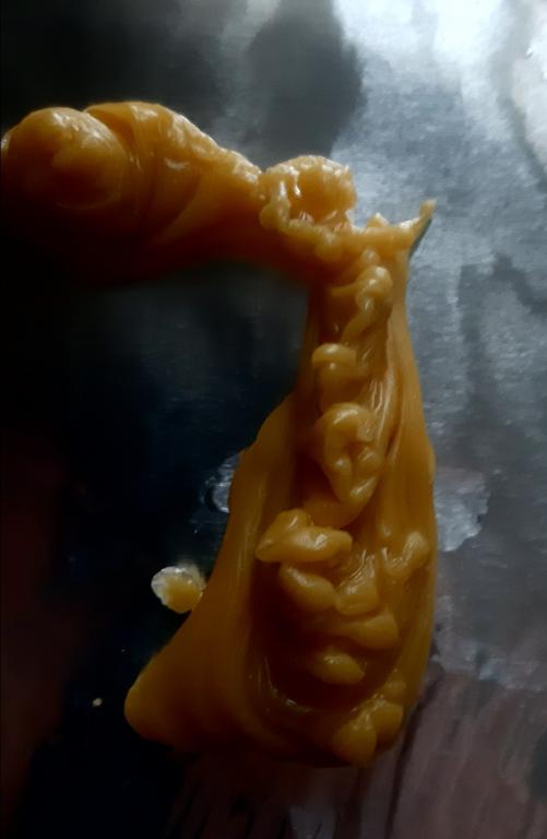 подскажите пожалуйста что отлилось, делала себе с общим оговором от негатива, что значит по краям тонкий прозрачный воск