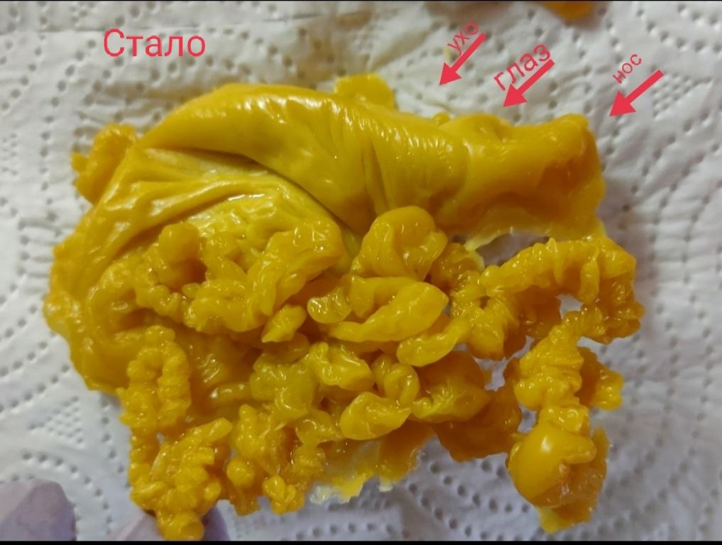 Стопа, очертания точные и ясные, хотя может быть и на птицу похоже, хвостом в нижний правый угол. Но была в конце апреля у ребёнка проблема с ногами в области стоп,тоже внезапная аллергия - диагноз аллергический артрит(покраснение и отек в области сустава стоп- как в отливке) ..странно для ребёнка садовского возраста. (на тот период делали отливки ему же, но шло все очень тяжело по снятию, постоянные чайные ложки и детские колготки и в виде буквы Л.). Закрытие путей или всё-же переклад?