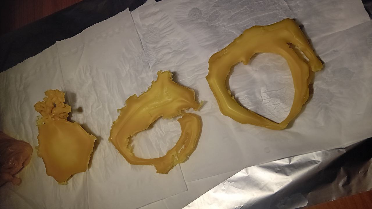 Доброго времени суток Уважаемые Мастера. Неделю назад я писал на форуме и Уважаемый СМЕХ подсказал мне поработать с Манипурой, за что ему особая благодарность. Вот отливаюсь в сутки по отливке , в основном по ночам ближе к трем. Воск топлю на газу.  Три отливки лил через нож(холодный). Подскажите,что у меня в диагнозе и в какую сторону двигаться ?( мужчина 38 лет ) С уважением