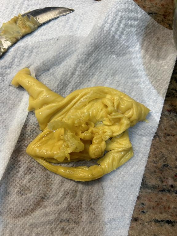 Прошу Вашей помощи в понимании картин отлитого воска. После комплекса (в один день около 30 отливок - сущи, крадники, привязки, обрыв некро и тд)с различными заговорами через серп с поддержкой ВС наконец-то получаю почти идеальную картинку несколько раз подряд с ровным контуром и почти приличным рисунком... дай думаю,контрольный выстрел сделаю! И бац!!! Покойничек выливается до дна, как с нуля! А потом вот этот шедевр