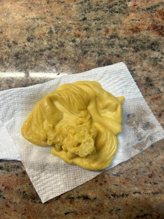 Доброго времени суток, уважаемые мастера! Продолжаю себя отливать от негатива. Подскажите пожалуйста что отлилось? Воск лила в отвар из полыни и зверобоя, в этот отвар ещё добавляла соль для усиления чистящего эффекта.