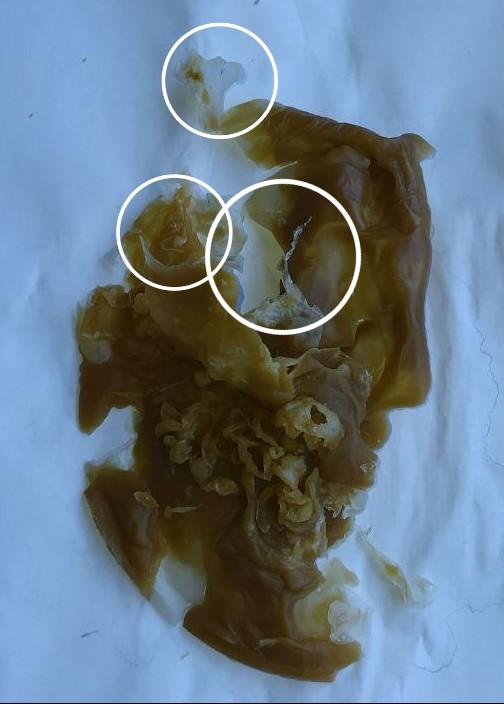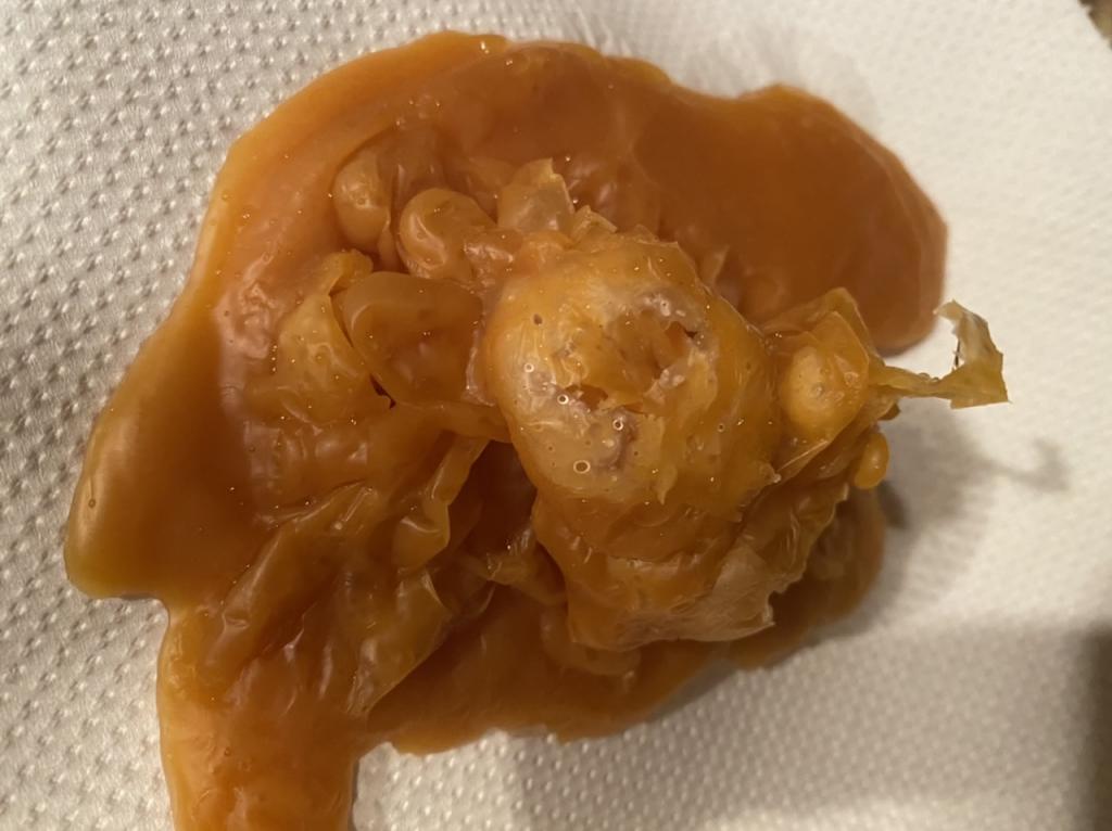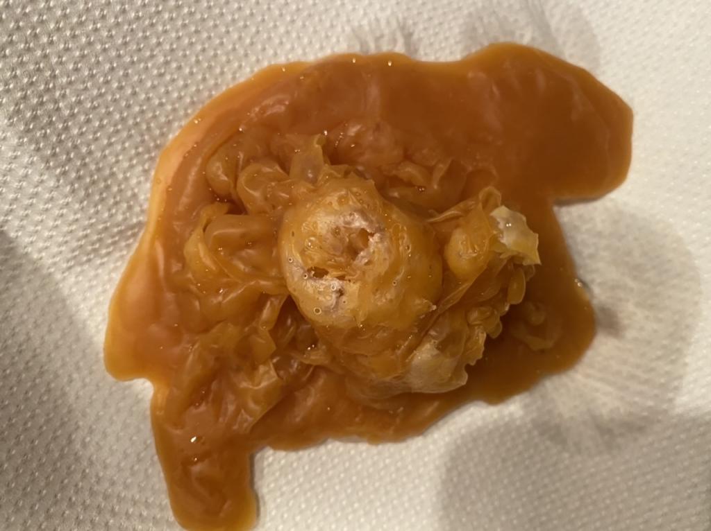 Уважаемый CVADROMAG! Доброго Вам времени! Благодарю Вас за ответ! Мне тоже кажется, что работа таки идёт! Вчера после пяти на морок, сделала под утро ещё три на отливку подселенца с тем же, что и ранее заговором. На первой фото сущака с лапками. Похожа на корень женьшеня, почему-то, или на ещё какой...Уже не выглядит так устрашающе. Но я решила - "НЕ убежишь, гадина!" и на второй мы видим рассечение на 2ве части. Такого ещё не было. ( не капюшон ли опять на верхней части?..)