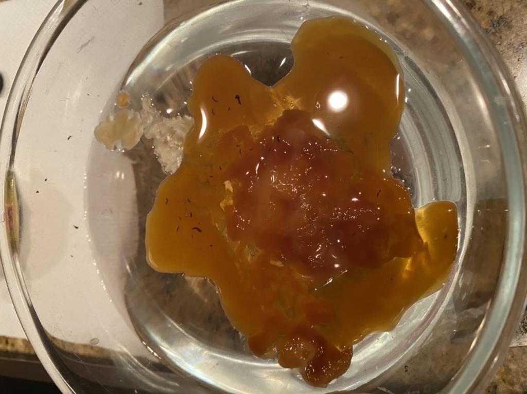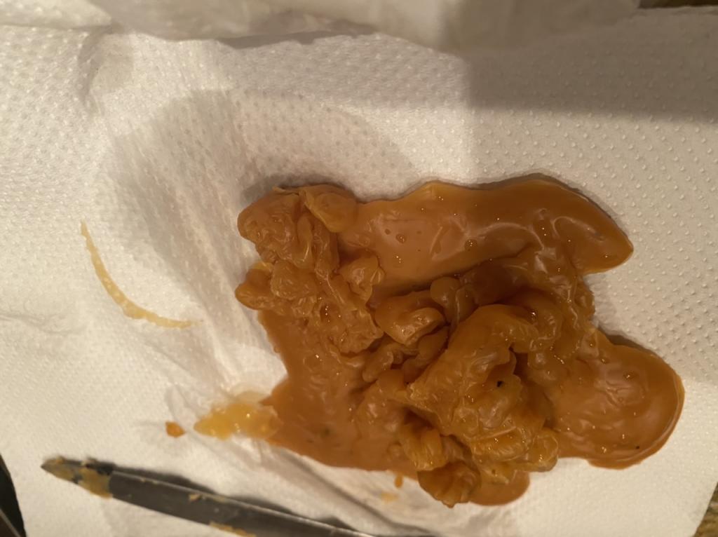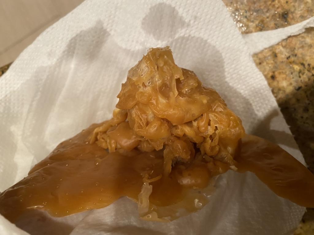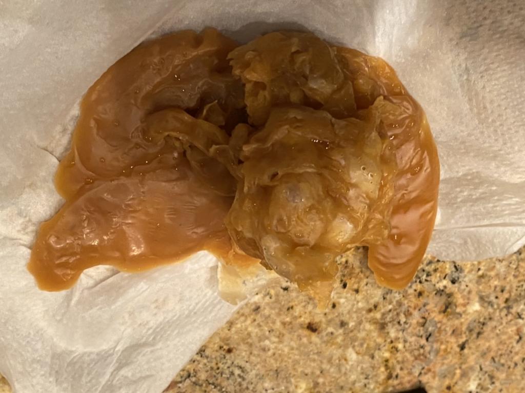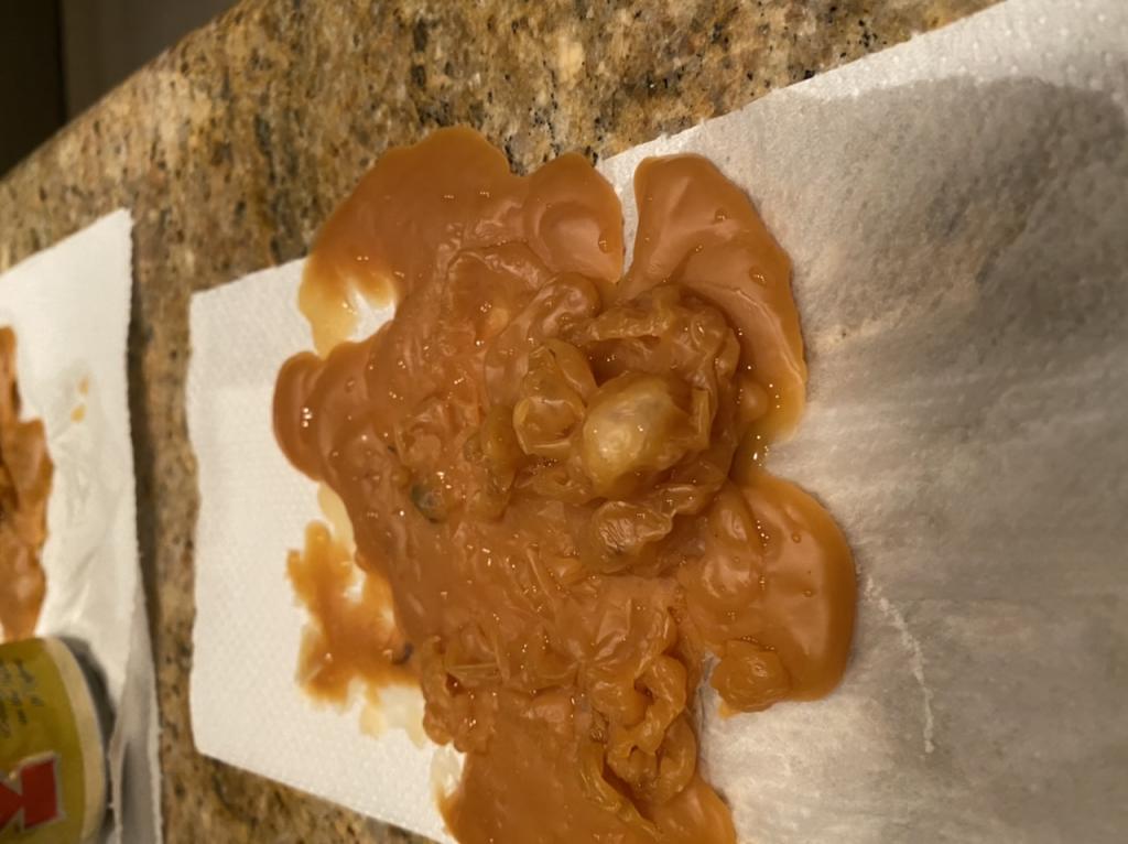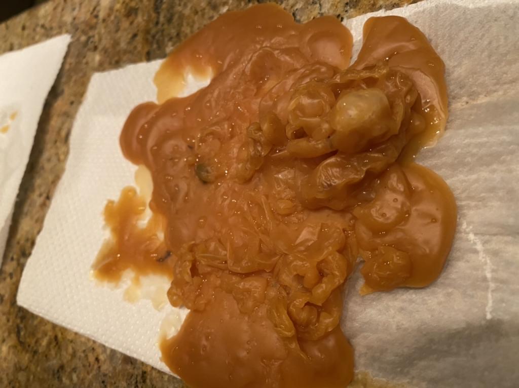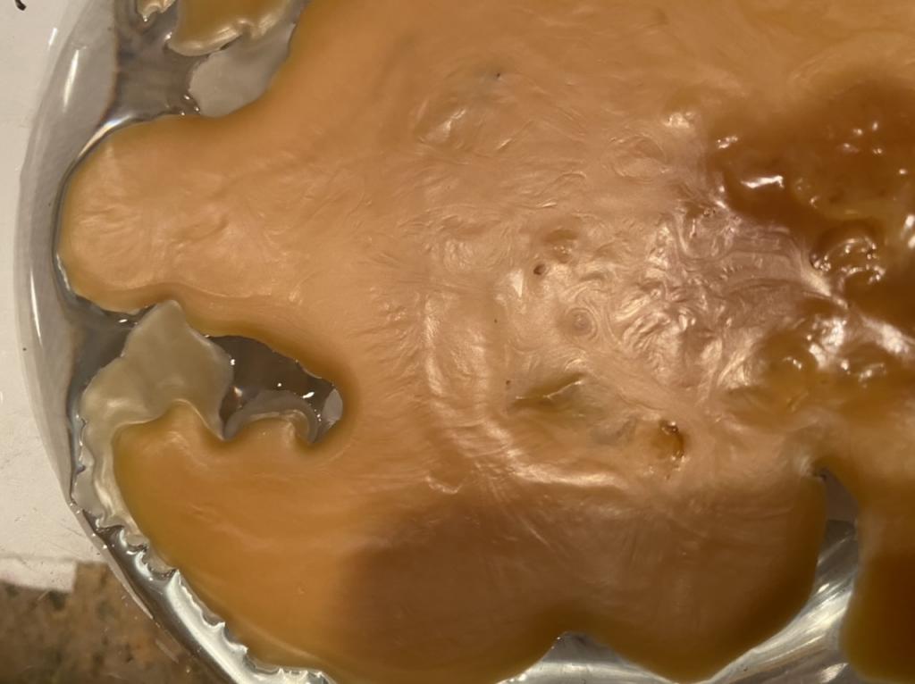 Ниже номер три. Она очень идентична тому что было ранее. И нет...её ничего пока что не берет, как я вижу. Это мерзкая тварь -морочище. Я вижу эту дрянь и представляю как она влияет на меня,  у неё даже что-то вроде губищ-рта. Отвратительнейшее зрелище, всё что я знаю - это то, что я хочу от этого паразита избавиться! Плёнка просто застелила всё...Она больше с каждой отливкой и мне не по себе. Почему-то даже рожи сущей не производят такое впечатление как вот это. Хотя, тоже своего рода сущь! И я ещё обратила внимание на интересный странный узор на этой плёнке! Не знаю на сколько видно на фото, но знаете что напомнило? Инфузорию-туфельку  — вид инфузорий, одноклеточных организмов.  (Встречаются в пресных водах. Средой обитания инфузории-туфельки являются любые пресные водоемы со стоячей водой и наличием в воде разлагающихся органических веществ (разлагающихся...Как раз на моей предыдущей (первой) морочной отливке видно некое как-бы разложение...)) Суть в том, что и я и не только я видим, что в наведении на меня воздействий, помимо прочего, участвовала вода неким образом. Сижу я в 6 утра и думаю, про Инфузорию туфельку...А нет ли тут связи?Вода во снах постоянно. Может и было произведено сокрытие через воду как раз. Но эта дрянь пока не особо сдается :( Или я чего-то не вижу...( ну да, я ж под мороком... >:( )