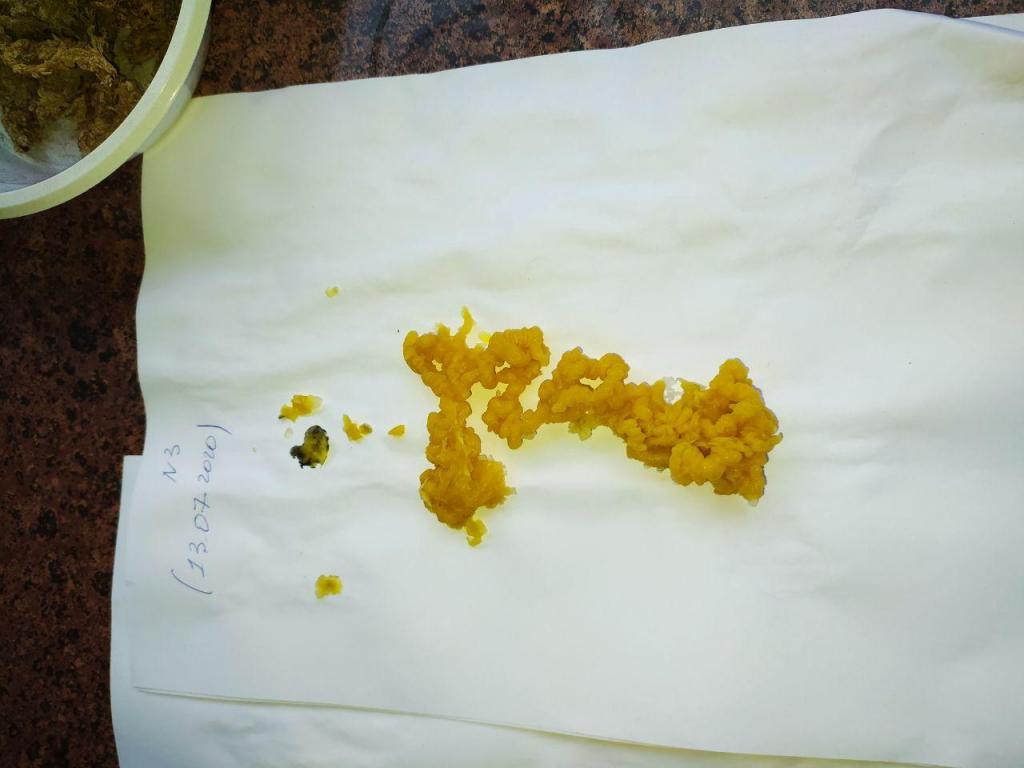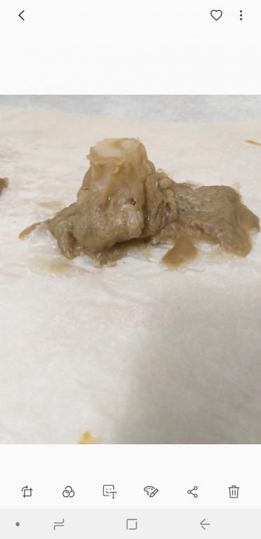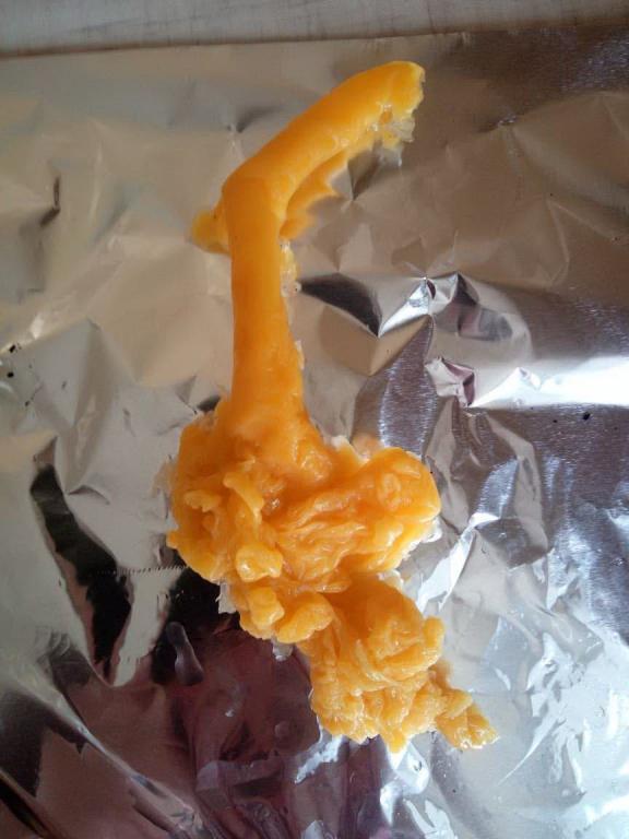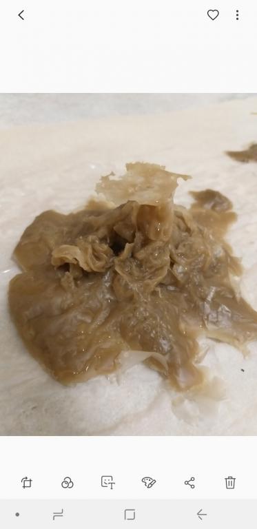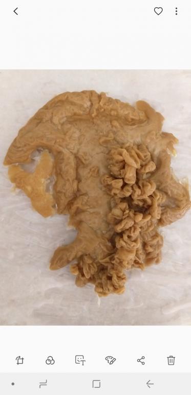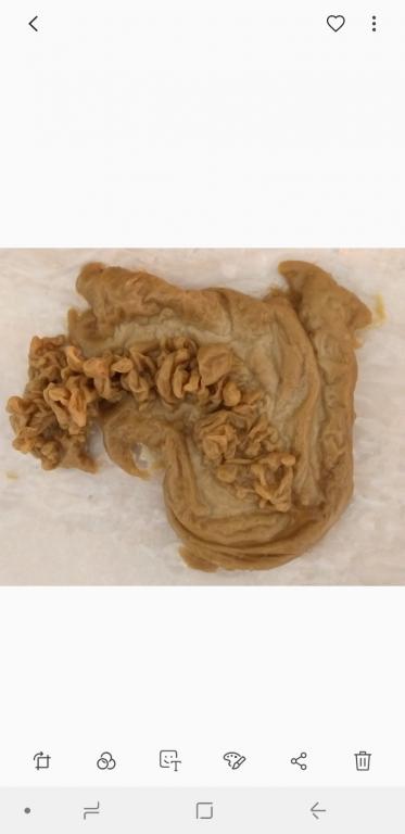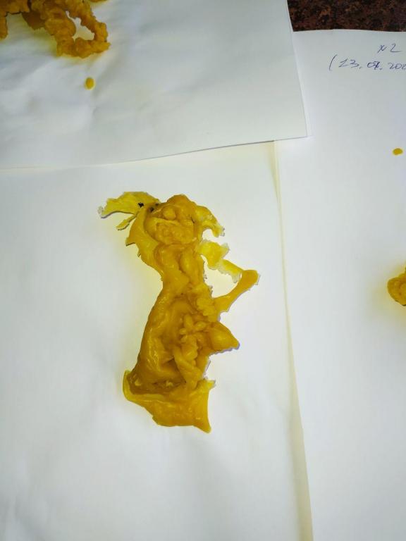 Ниже номер три. Она очень идентична тому что было ранее. И нет...её ничего пока что не берет, как я вижу. Это мерзкая тварь -морочище. Я вижу эту дрянь и представляю как она влияет на меня,  у неё даже что-то вроде губищ-рта. Отвратительнейшее зрелище, всё что я знаю - это то, что я хочу от этого паразита избавиться! Плёнка просто застелила всё...Она больше с каждой отливкой и мне не по себе. Почему-то даже рожи сущей не производят такое впечатление как вот это. Хотя, тоже своего рода сущь! И я ещё обратила внимание на интересный странный узор на этой плёнке! Не знаю на сколько видно на фото, но знаете что напомнило? Инфузорию-туфельку  — вид инфузорий, одноклеточных организмов.  (Встречаются в пресных водах. Средой обитания инфузории-туфельки являются любые пресные водоемы со стоячей водой и наличием в воде разлагающихся органических веществ (разлагающихся...Как раз на моей предыдущей (первой) морочной отливке видно некое как-бы разложение...)) Суть в том, что и я и не только я видим, что в наведении на меня воздействий, помимо прочего, участвовала вода неким образом. Сижу я в 6 утра и думаю, про Инфузорию туфельку...А нет ли тут связи?Вода во снах постоянно. Может и было произведено сокрытие через воду как раз. Но эта дрянь пока не особо сдается :( Или я чего-то не вижу...( ну да, я ж под мороком... >:( )
