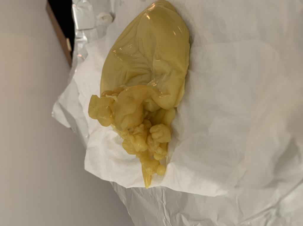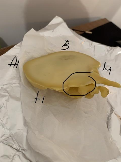 Это так назыаемая "ракушка" - закрытая отливка. Собственно, в подтверждение моего предыдущего поста для Вас. Это значит, что есть что-то что не даёт снять нкгатив. Такие отливки выливаются, когда есть препятствие, что-то не даёт снять. Ракушку надо разбить. И лучше другими методами.