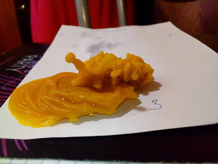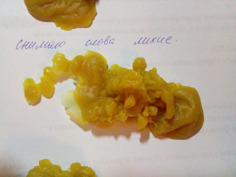 Да, на водяной бане. Первые отливки были с красным и черным перцем и активированным углём, в воске, все вместе плавила. И на последней отливке в воске трава полыни измельченная. Поэтому и внутри черное.