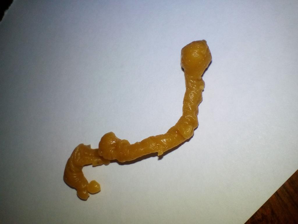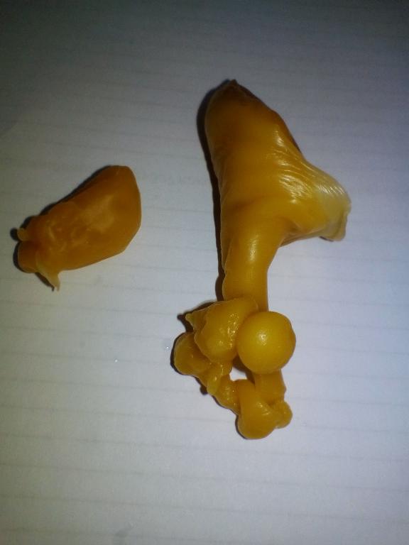Отливала на общий негатив, первые две отливки к сожалению не сфотографировала (огромный сталактит из середины доставал до дна посудины). Это результат третьей отливки (низ, верх гладкий как стекло), помогите пожалуйста понять:
