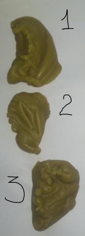 1. Отливавала близкую женщину по фото - чистила конкретно денежный канал - 1ый день 3 раза (утром, вечер и почти ночь) - все 3 отливки  как  головастики -  явно крадники. Вчера 2ой день отливала, нашла заговоро против крадника - отсечение раскаленным ножом - отсекла, отливнки начали выходить круглыми, без хвостиков - но наросты снизу. Вообще по диагностике на Таро у человека выходил повешенный - переворот в жизни, так и получается, была очень обеспеченные семья, бизнес... сейчас вся семья в нищете, гляди и из квартиры вытурят.  Как можно чистить дальше?