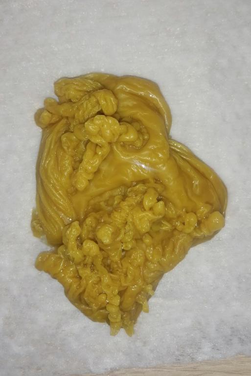 Как и писал, воск на огне плиты я только разогревал, а дальше плавил его над свечей до полного растворения и пузырьков, а тем более бурления не было, была однородная масса с приятным ароматом меда и темно-золотистого цвета.