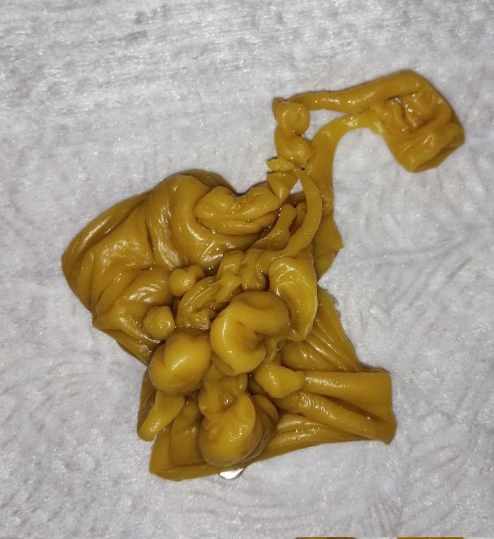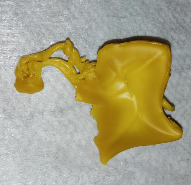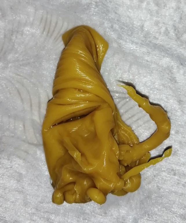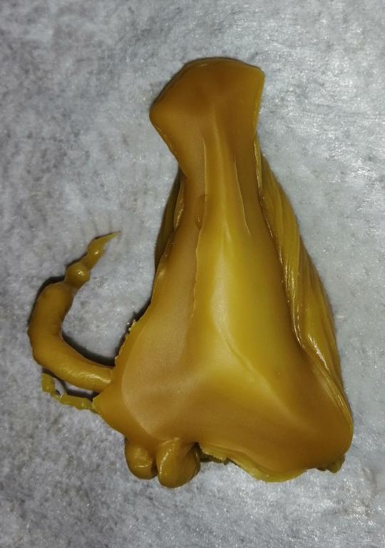 Первая отливка второго дня как будто не удалась, когда ее отливал (лил с той же скоростью что и обычно, воск был полностью растоплен без пузырьков и до отливки держал его над свечей) часть воска осталось в ковшике, застыл он быстро. Две следующие отливки отлились полностью. Воска беру грамм 25-30 на отливку.