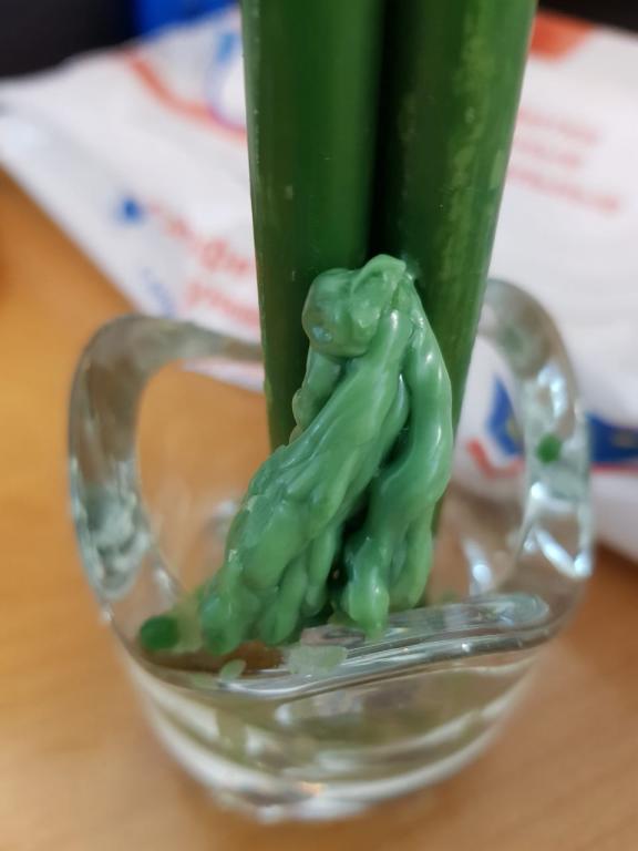 Почему вообще встал вопрос с воском: сейчас нашу компанию (а свечи жгутся в офисе, по вопросам работы) окружают довольно странные ситуации, негатив очень сильный от арендодателя, пришлось ставить защиту. Мне показалось неспроста свечи потекли...