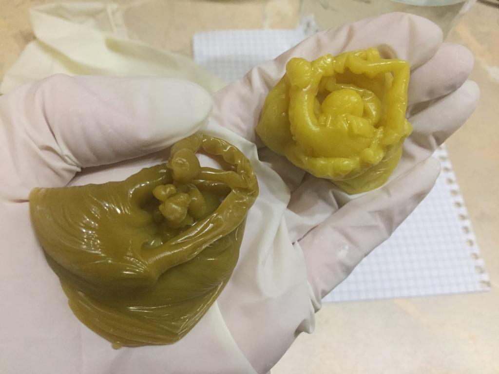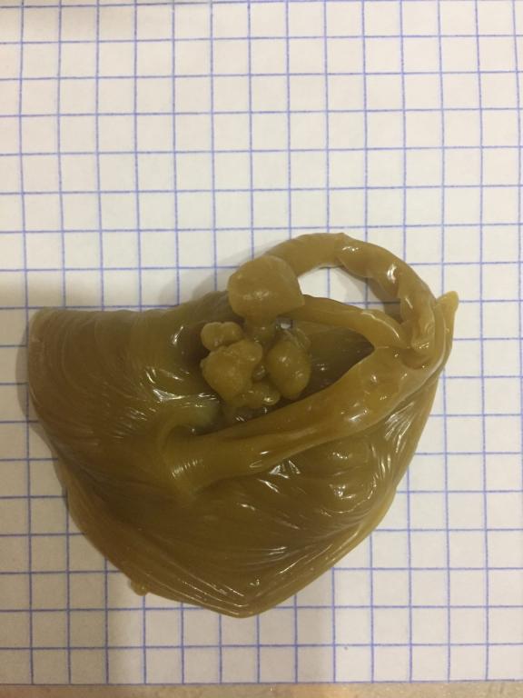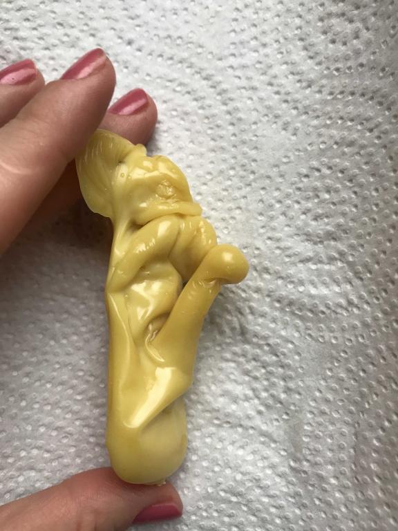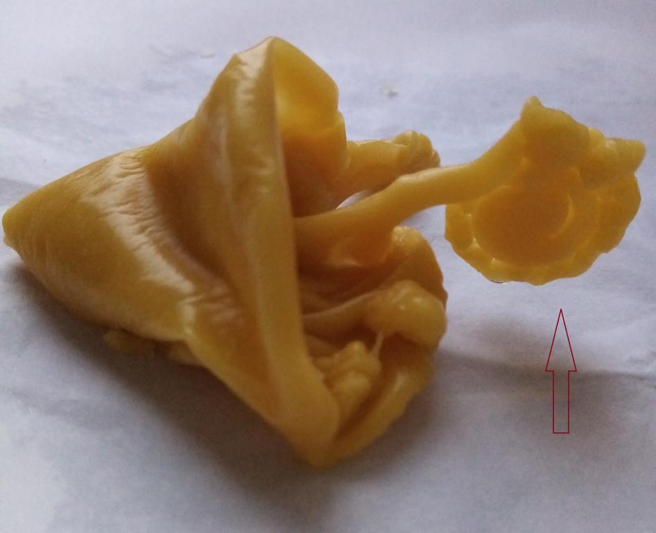 Я делала серию 18 отливок, на фото - 12-я, 13-я и 17-я. Остальные гораздо более плоские, есть даже пара почти блиноподобных. У меня уже несколько месяцев на чистках обычно идёт серия довольно плоских отливок, которые перемежаются отливками, прилипающими ко дну - скажем, четыре штуки плоских, пятая -столбом до дна, потом опять несколько плоских. Но таких страшных отливок, как эти, ещё не было. Подскажите, что они значат и можно ли считать, что это так вскрылся более глубинный негатив, и я теперь смогу его выч стить?